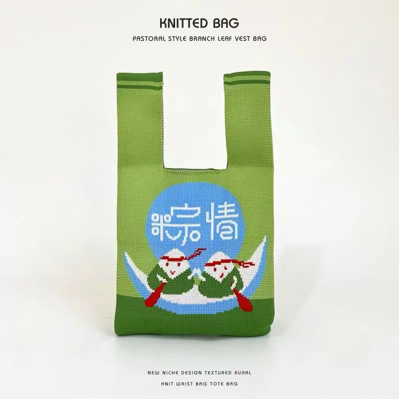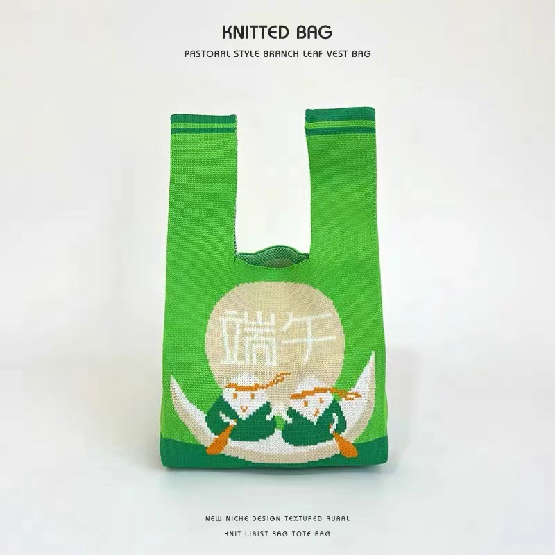 드래곤 보트 축제 휴대용 니트 가방 zongzi 손 선물 가방 회사 선물 선물 가방 휴대용 손 가방을 공식화 할 수 있습니다스토어 가기