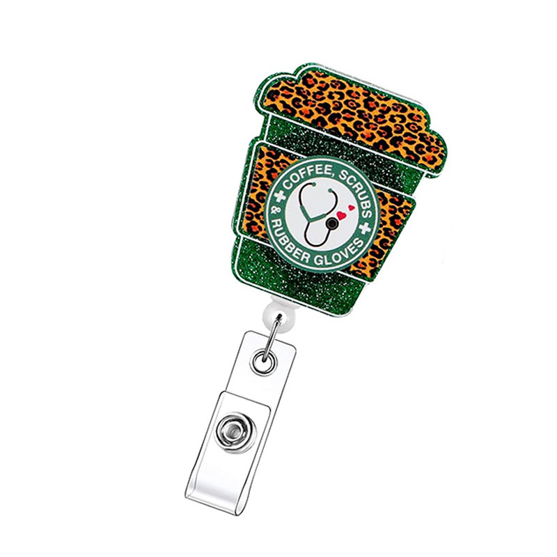 아마존 벨트 클립 아크릴 쉬운 풀 버클 개폐식 COFFEE 반짝이 배지 릴 배지 배지 버클