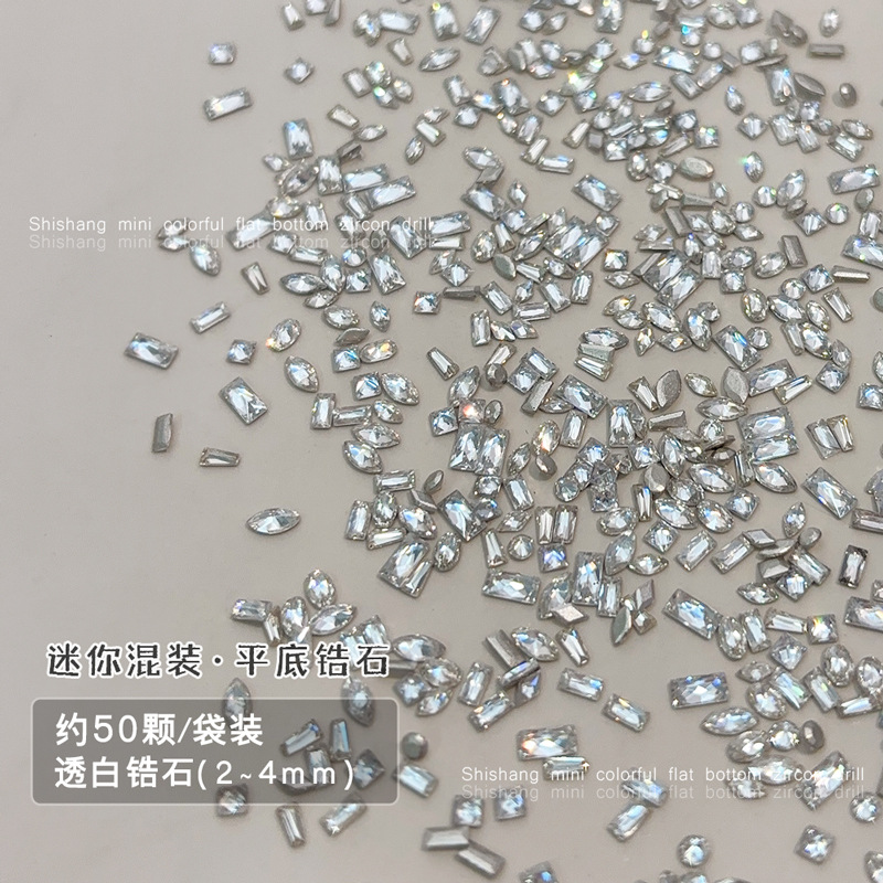 미니 플랫 하단 거꾸로 된 지르콘 네일 아트 쥬얼리 플래시 스몰 사이즈 말 아이 다이아몬드 화이트 파우더 샴페인 모양의 네일 드릴스토어 가기