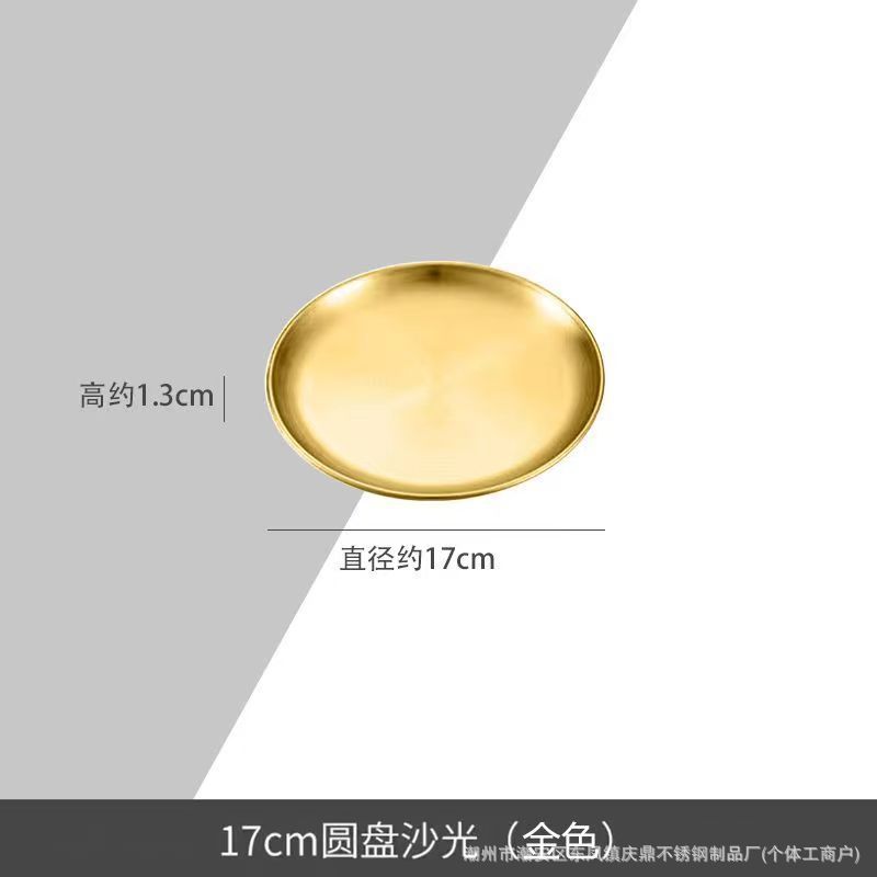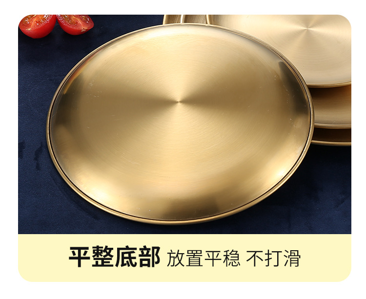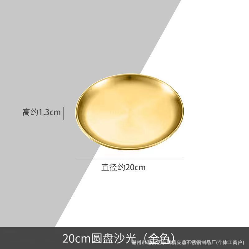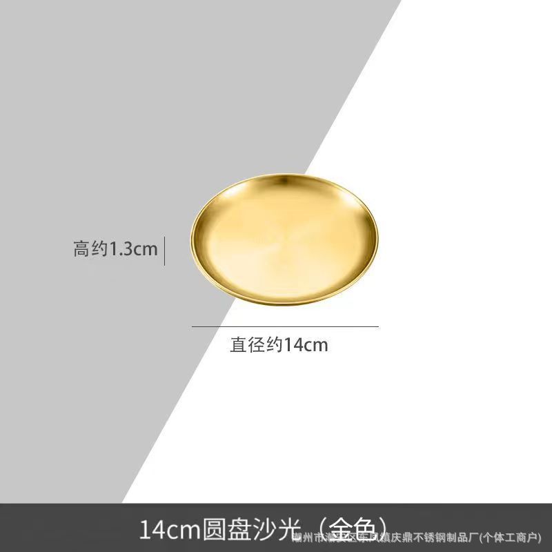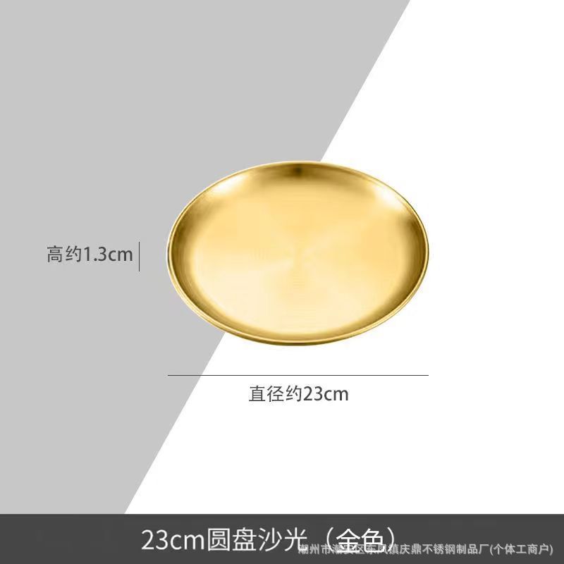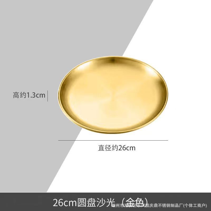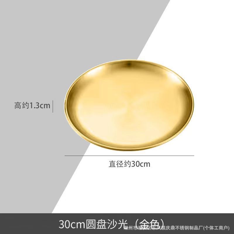 스테인레스 스틸 디스크 바베큐 플레이트 바베큐 공장 가정용 골든 트레이 케이크 플레이트 과일 얕은 플레이트 레스토랑 침 뼈 플레이트스토어 가기