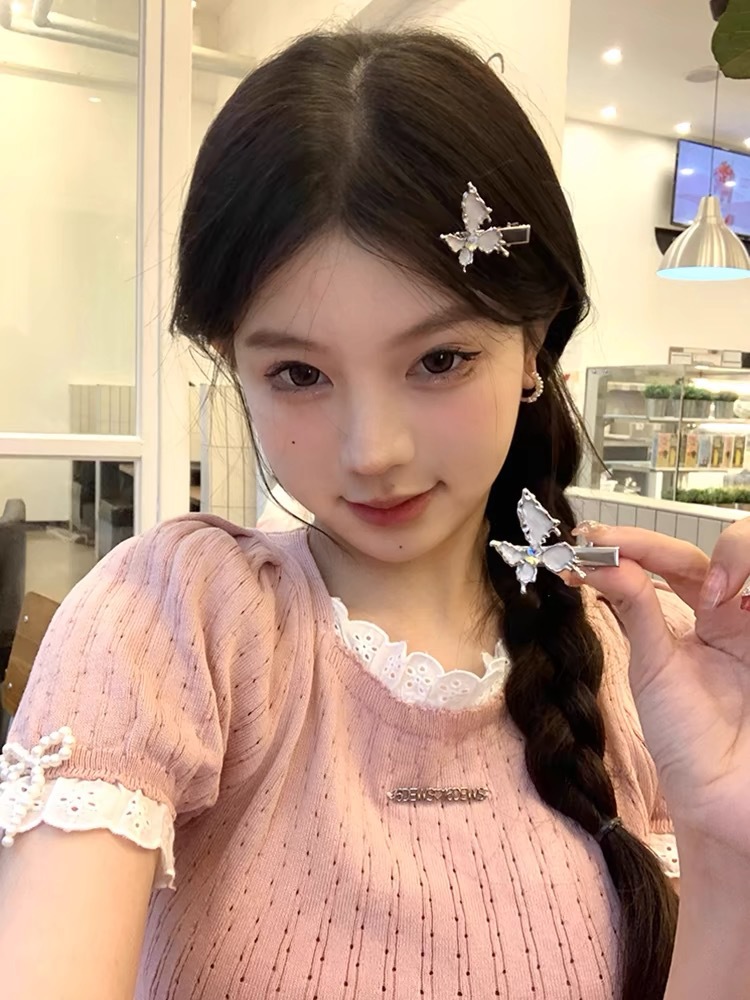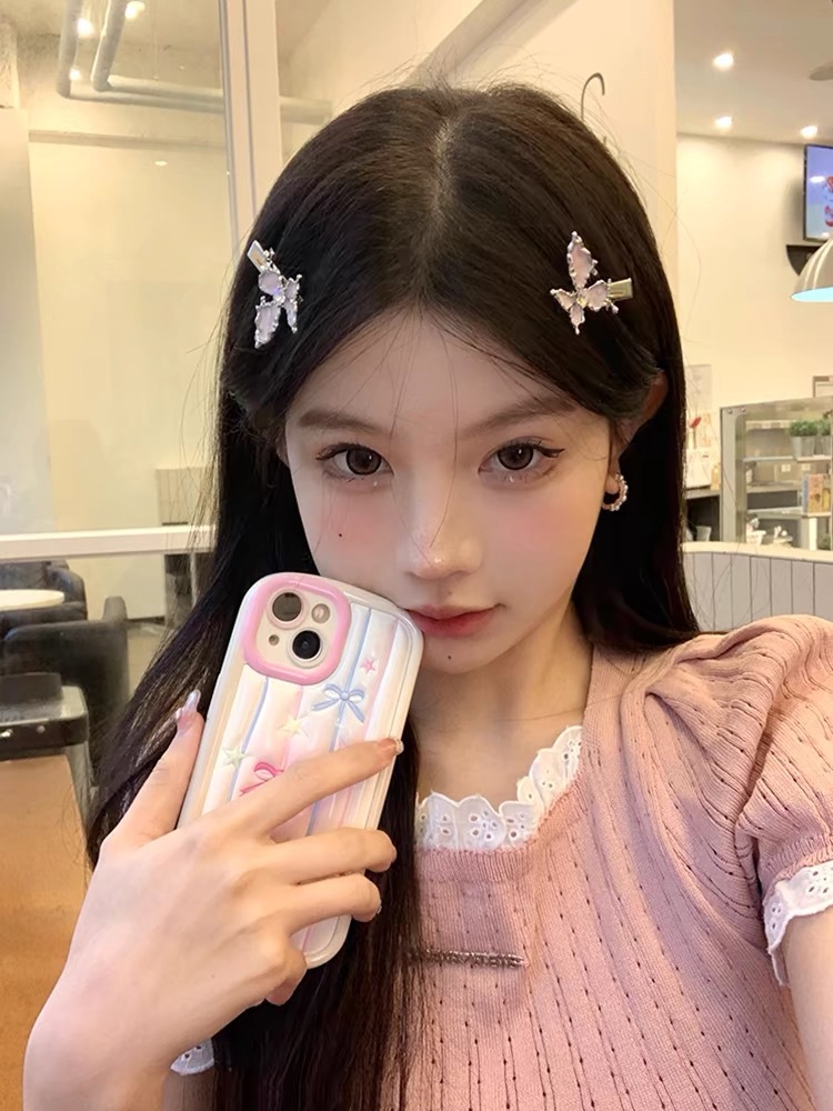 [복숭아 차] 연인 넬리 액체 나비 헤어핀 여성 사이드 뱅 사이드 클립 틈새 디자인 헤어 액세서리