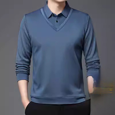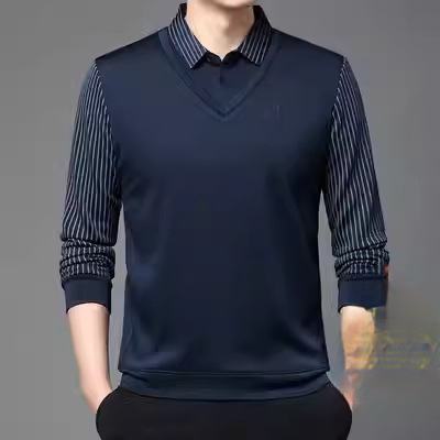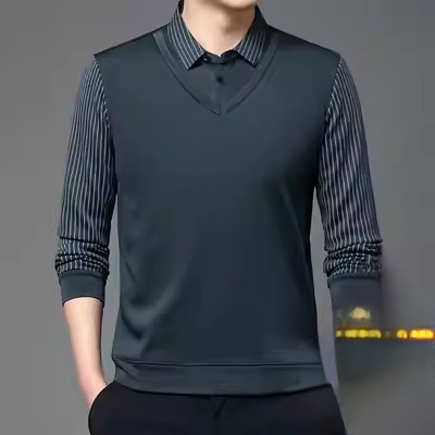봄과 가을 가짜 투피스 스웨터 남성용 중년 풀오버 옷깃 스웨터 아버지 코트 베이스 셔츠스토어 가기