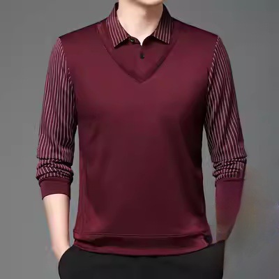 봄과 가을 가짜 투피스 스웨터 남성용 중년 풀오버 옷깃 스웨터 아버지 코트 베이스 셔츠