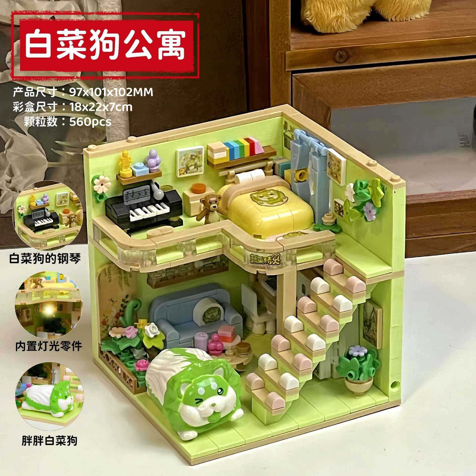 Bei Le Di Yellow Duck 아파트 스트리트 뷰 빌딩 블록 Diy 캐빈 미니 교육 조립 장난감 장식품 도매스토어 가기
