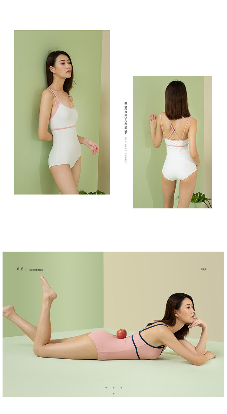2024 새로운 여성용 비키니 수영복, 고급, 순수한 정욕 스타일, 보수적, 배 커버, 슬리밍, 등이 없는 원피스 수영복