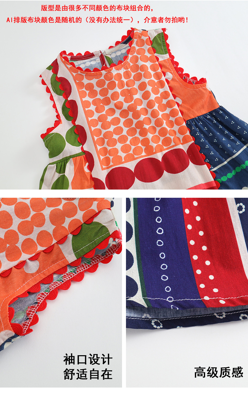 MDD 여아용 니치 감성 레트로 원피스, 일본풍 배색 스플라이싱 민소매 원피스, 베이비돌 스타일, 트렌디한 에스닉 스타일