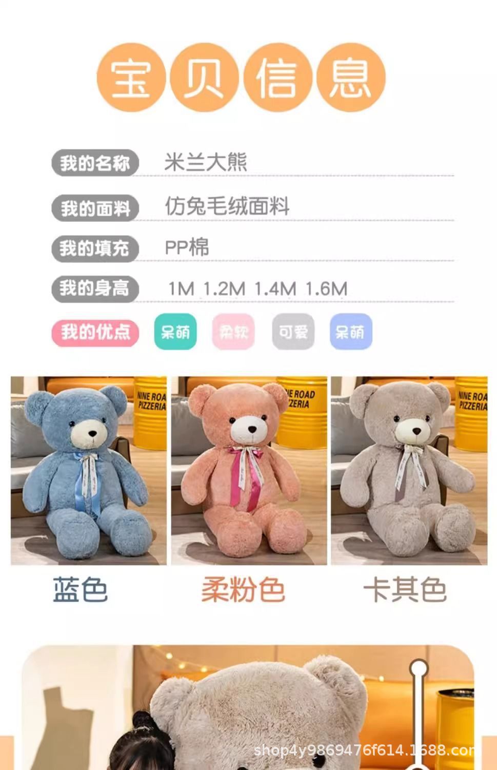 밀라노 봉제 곰 테디 베어 표현 인형 대형 슈퍼 귀여운 리본 곰 어린이 선물스토어 가기