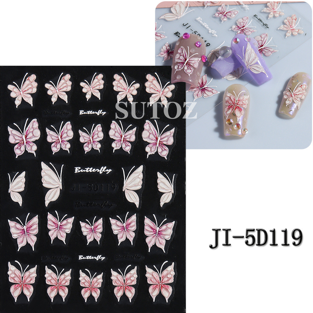2024 새로운 5D 네일 아트 스티커 작은 고구마 그물 레드 온스 나비 3 차원 릴리프 접착 스티커 마법사스토어 가기
