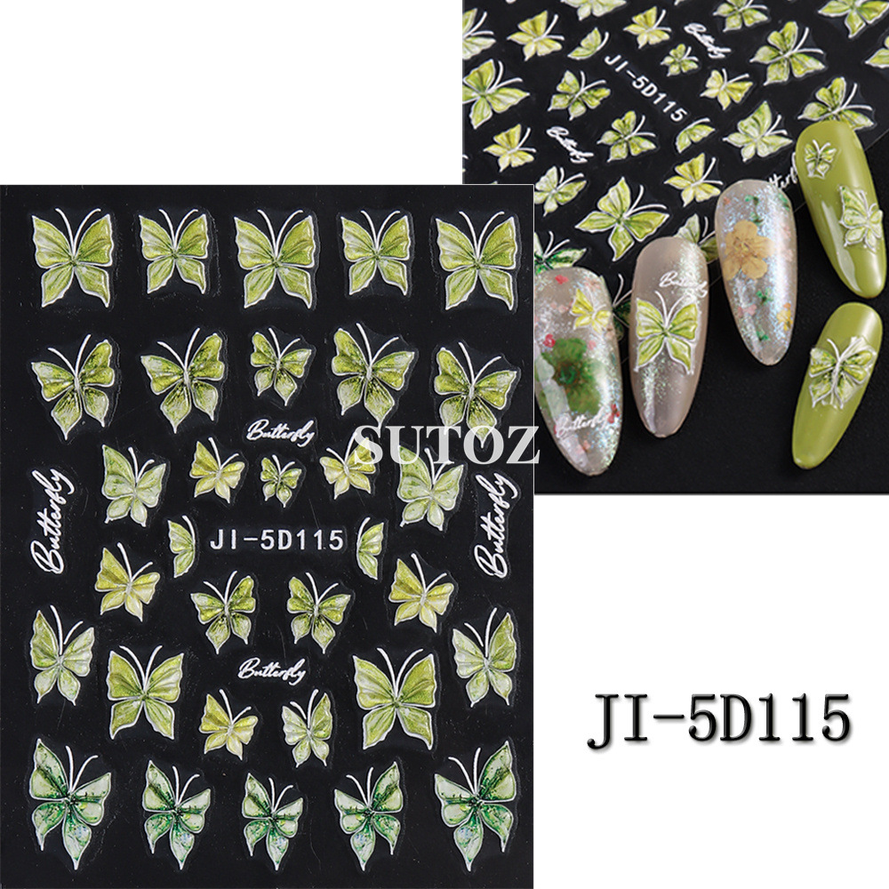 2024 새로운 5D 네일 아트 스티커 작은 고구마 그물 레드 온스 나비 3 차원 릴리프 접착 스티커 마법사
