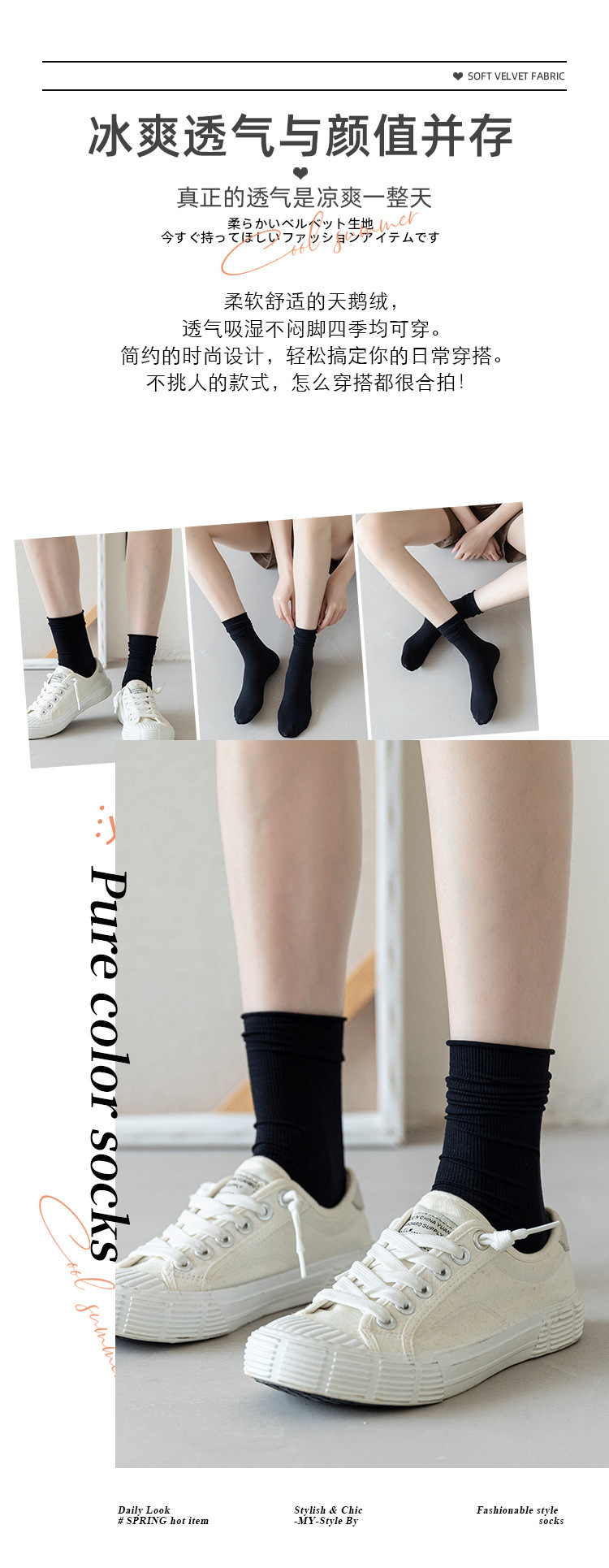 Jk Zhuji 양말 여성 여름 얇은 얼음 실크 시원한 통기성 뼈없는 얼음 양말 중간 튜브 양말 공주 스타일스토어 가기