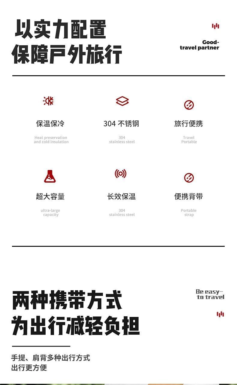 304 스테인레스 스틸 보온병 야외 보온병 대용량 남성 주전자 보온병 자동차 여행 냄비 1.2-4L