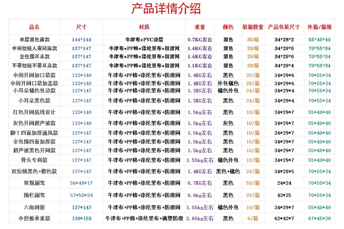 产品材质:600D牛津布+PP棉+涤纶里布+防滑网+PVC防水涂层