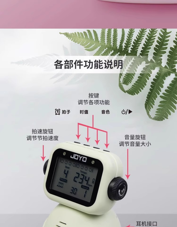 JOYO Zhuole JM-93 어린이 만화 로봇 메트로놈 기타 Guzheng 악기 유니버설 메트로놈