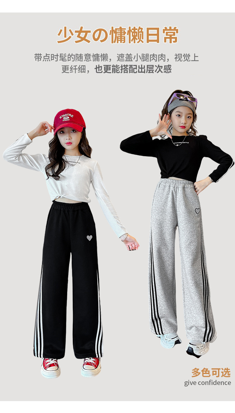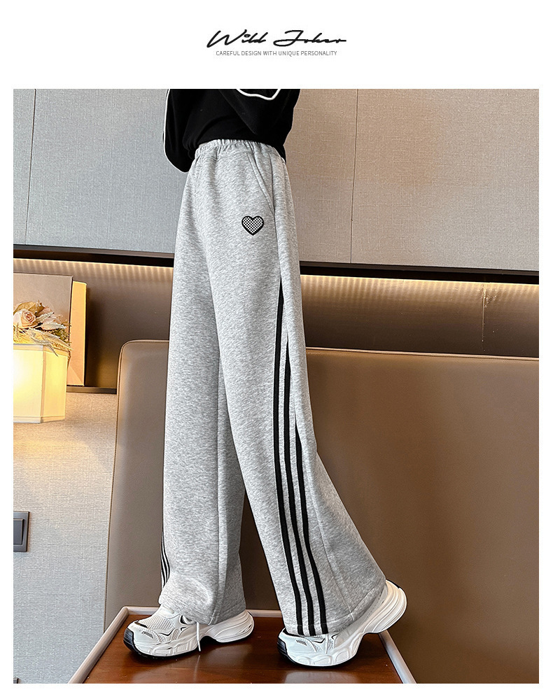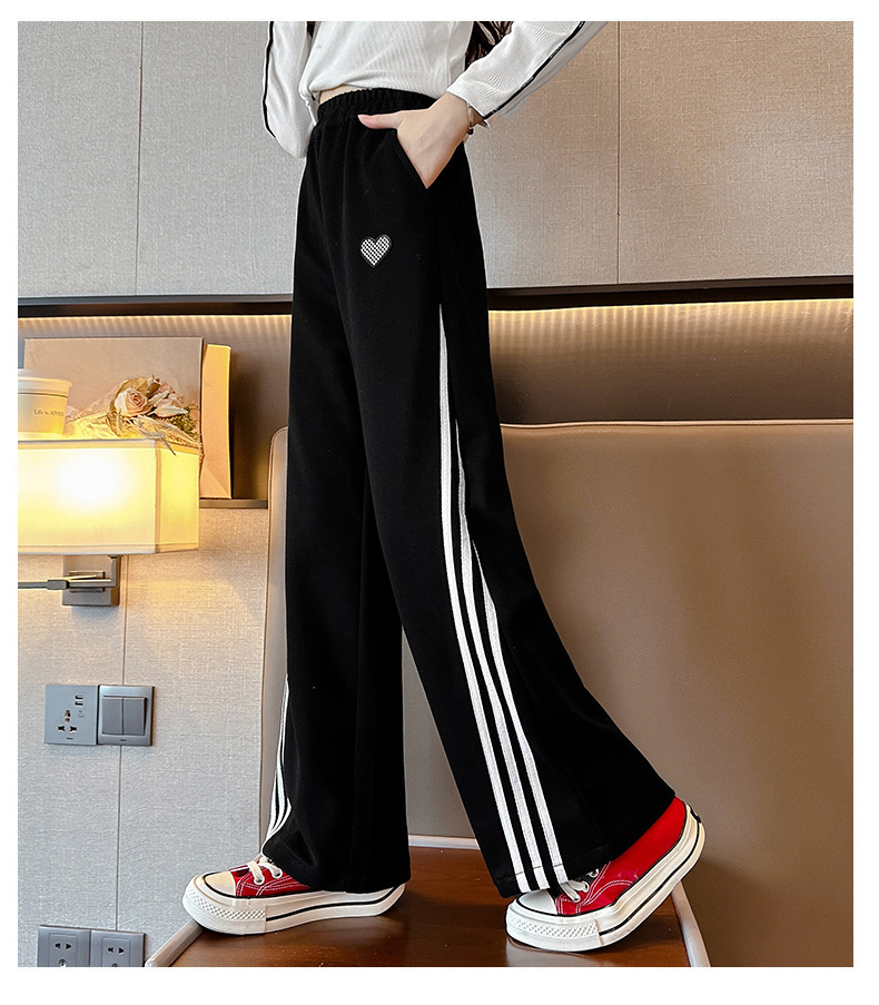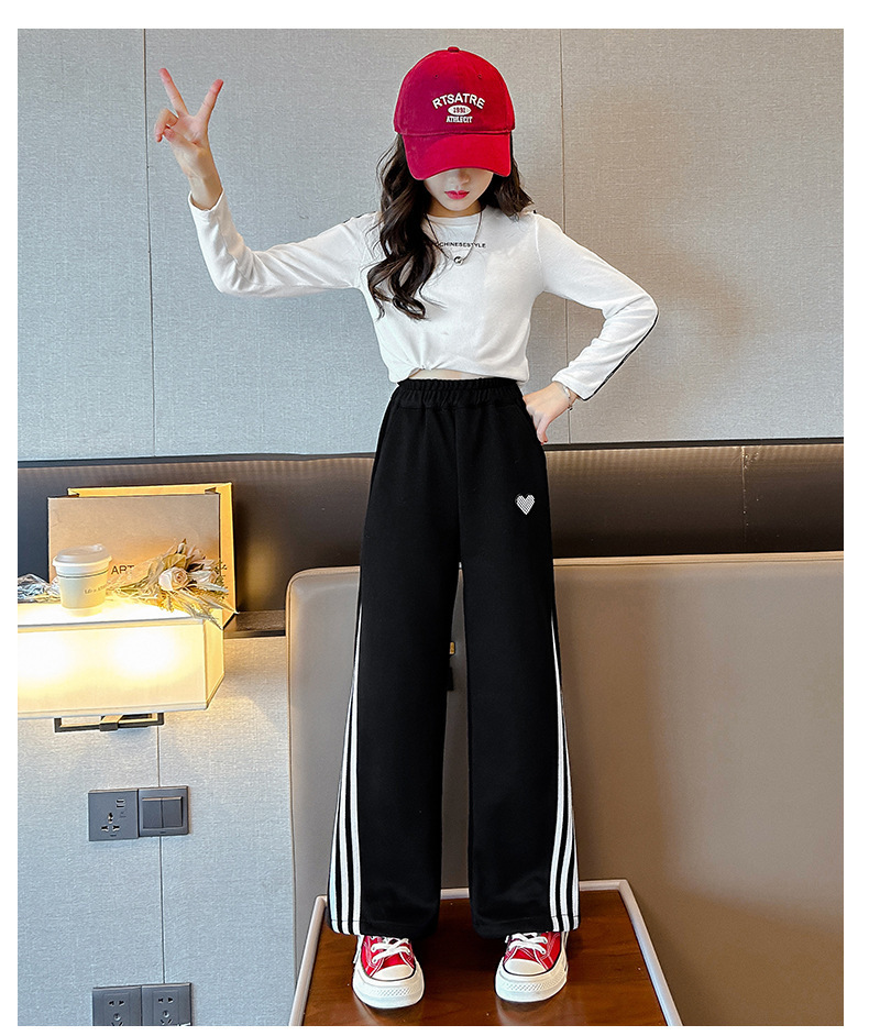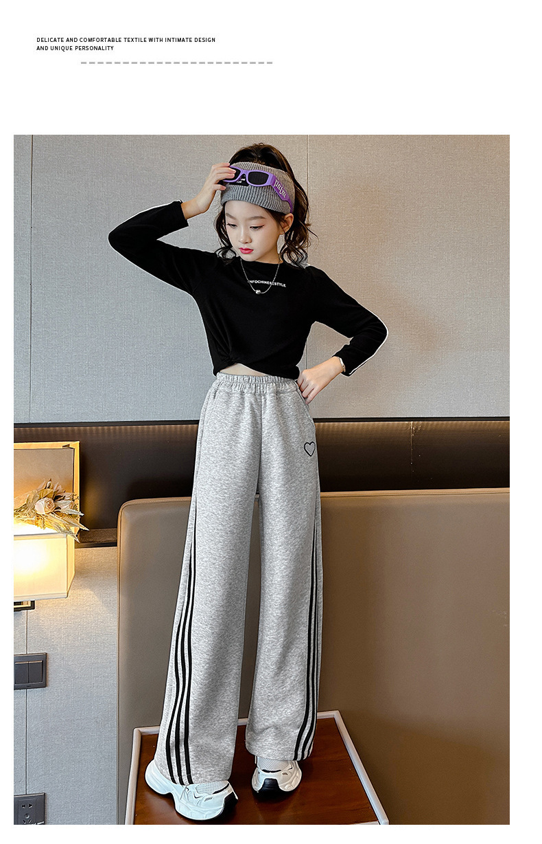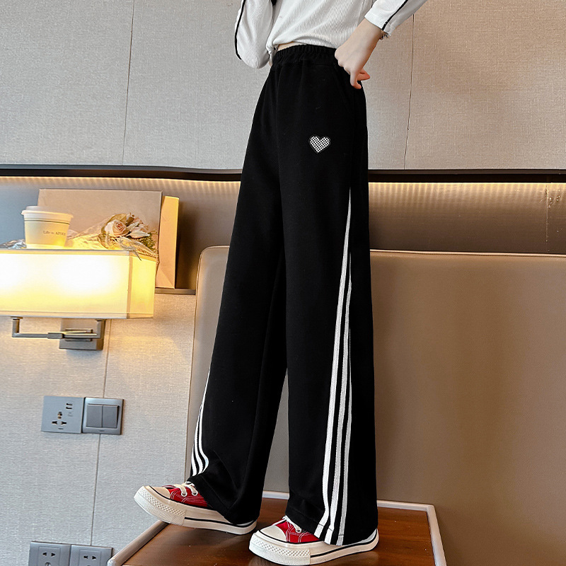 소녀 느슨한 캐주얼 바지 서양식 유행 2024 새로운 봄과 가을 외부 착용 스포츠 바지 어린이 가을 넓은 다리 바지