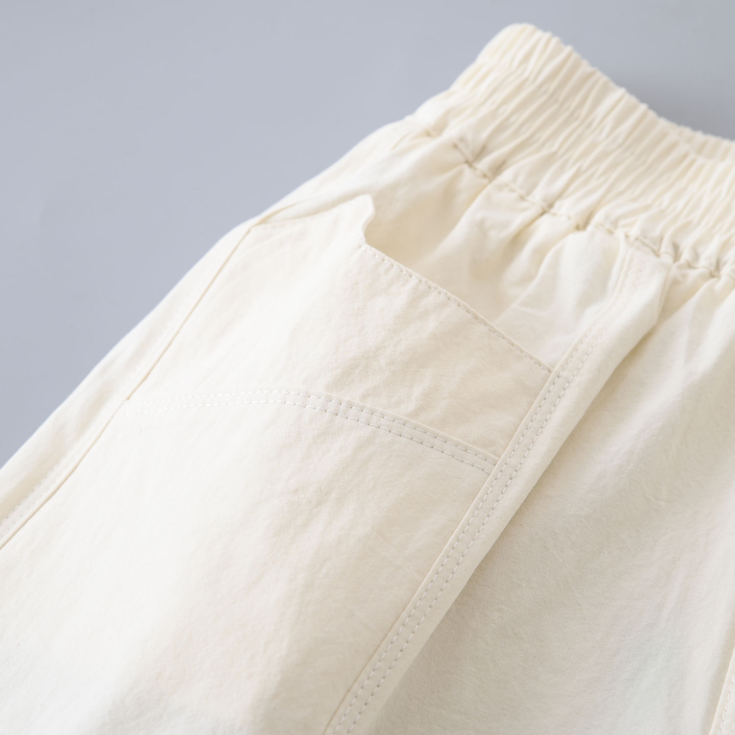 스포츠 캐주얼 반바지면 및 린넨 2024 큰 어린이를위한 새로운 느슨한 얇은 A-바지 남성 및 여성 표준 반바지-2405