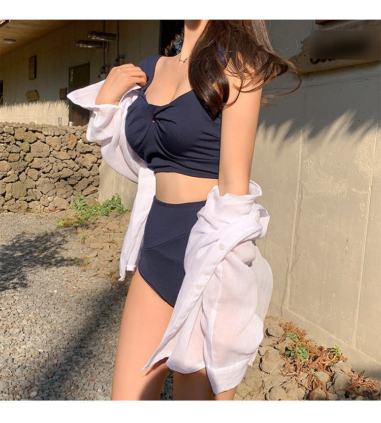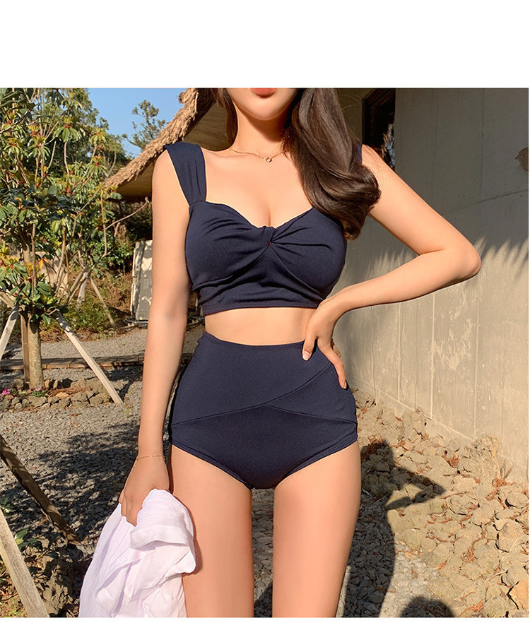 2024 유럽과 미국의 국경 비키니 새로운 스팟 분할 솔리드 컬러 비키니 튜브 탑 여성용 주름 푸시 업 수영복스토어 가기