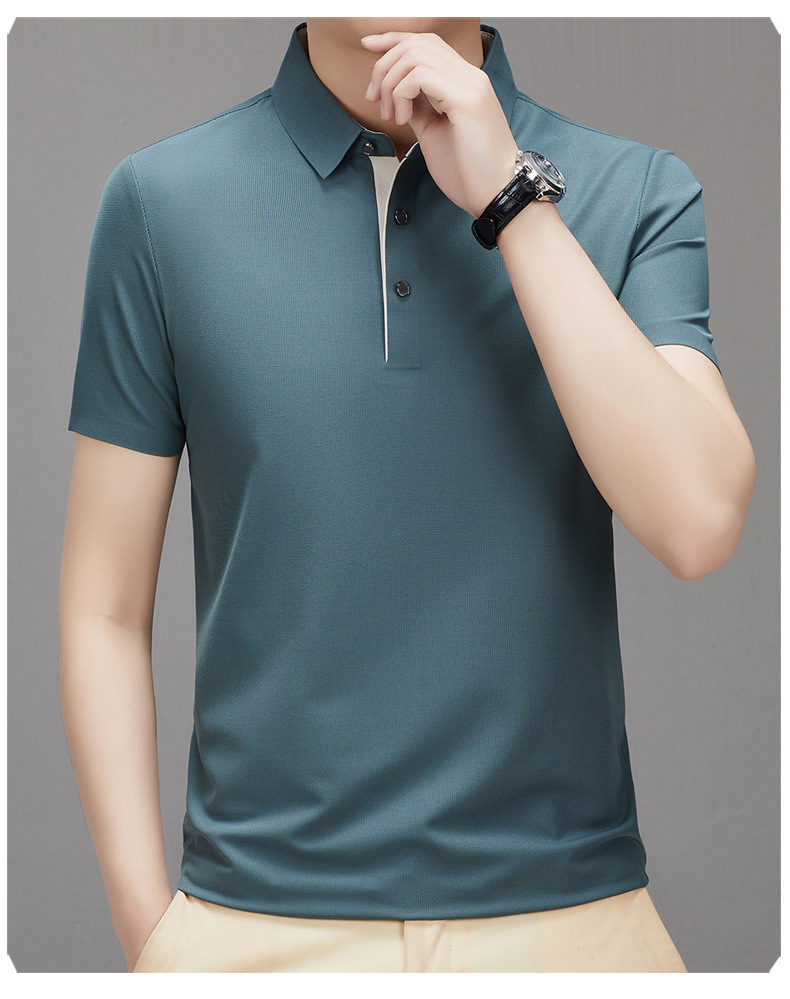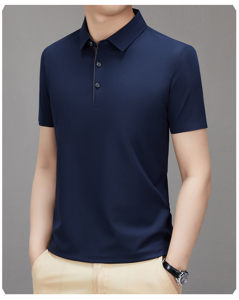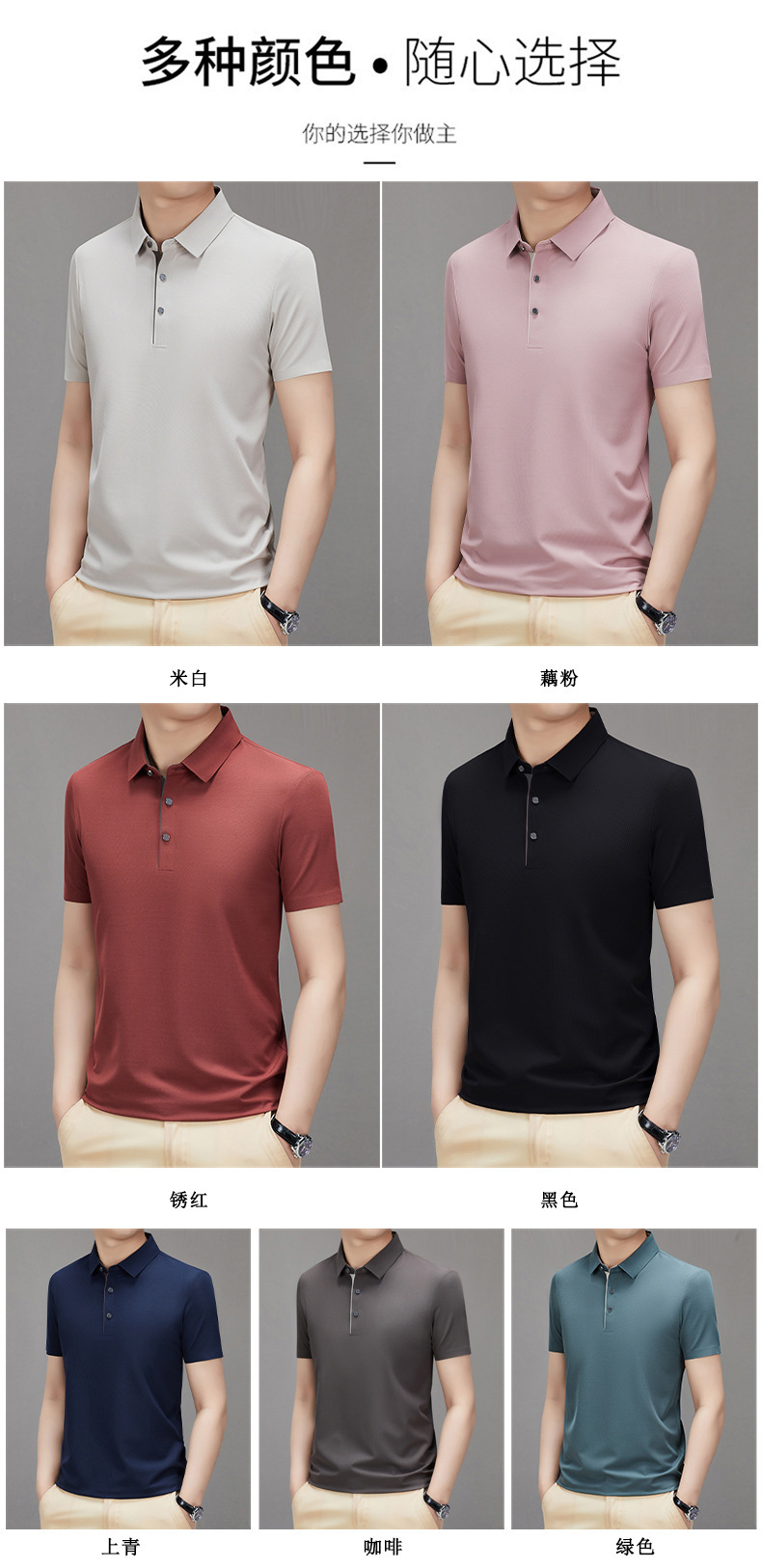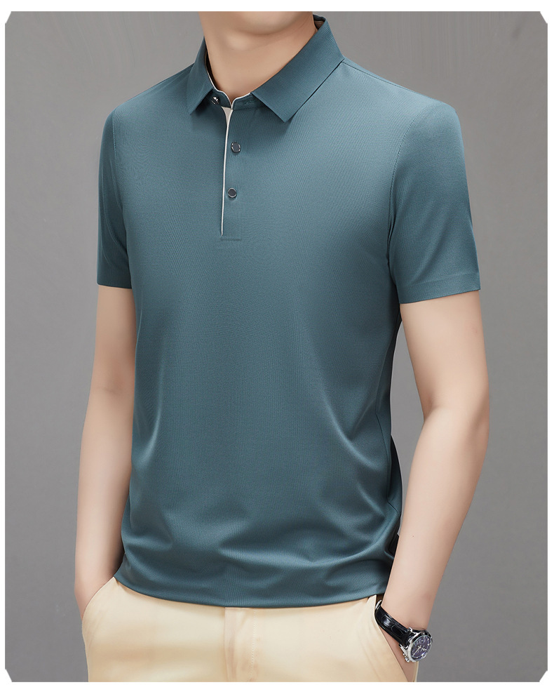 중년 아빠 반팔 티셔츠 남자 2024 여름 얇은 단색 칼라 주름 방지 트렌디 탑