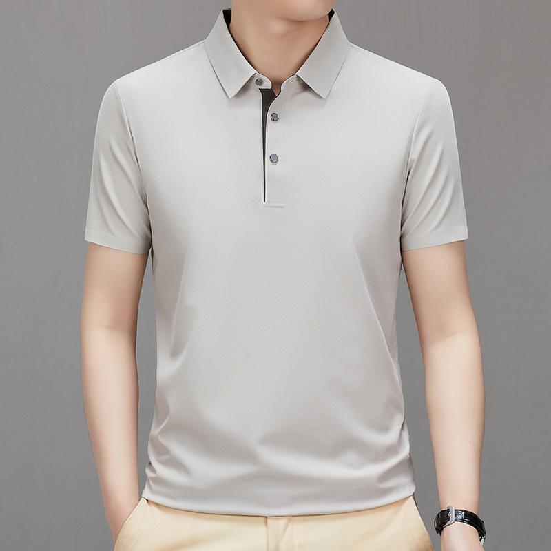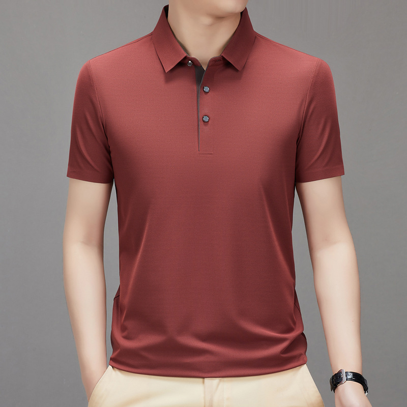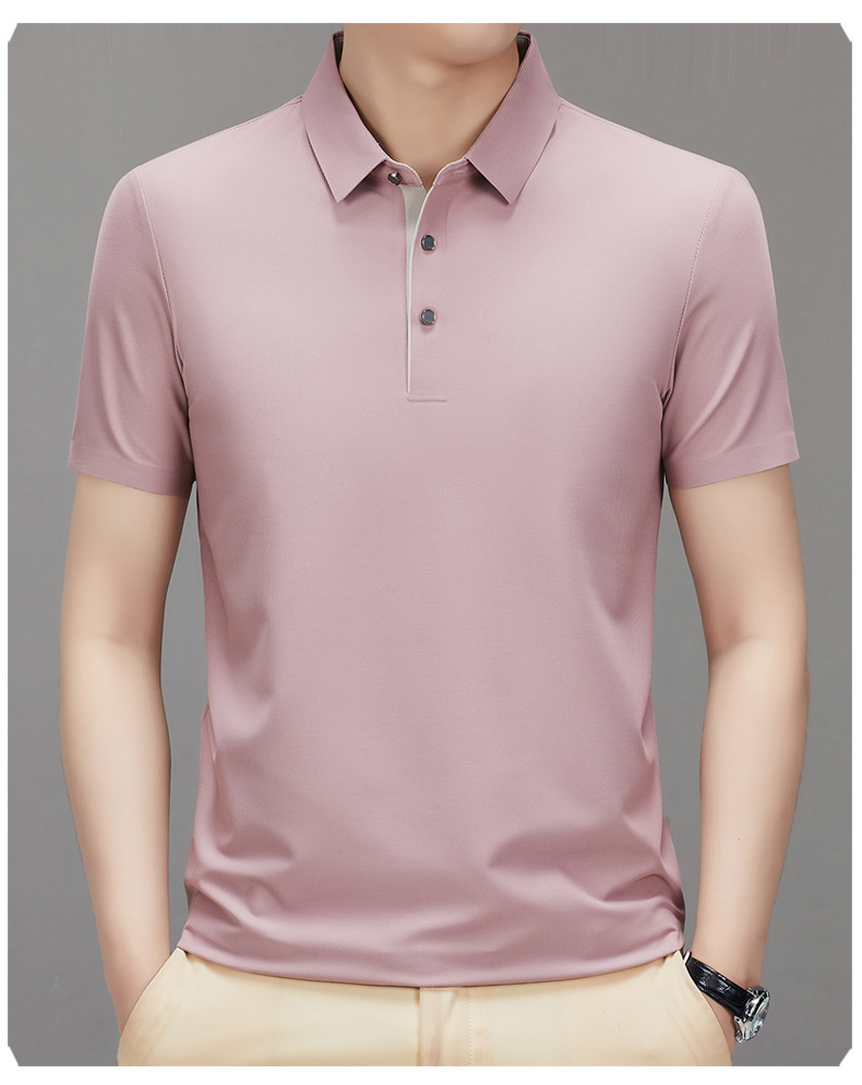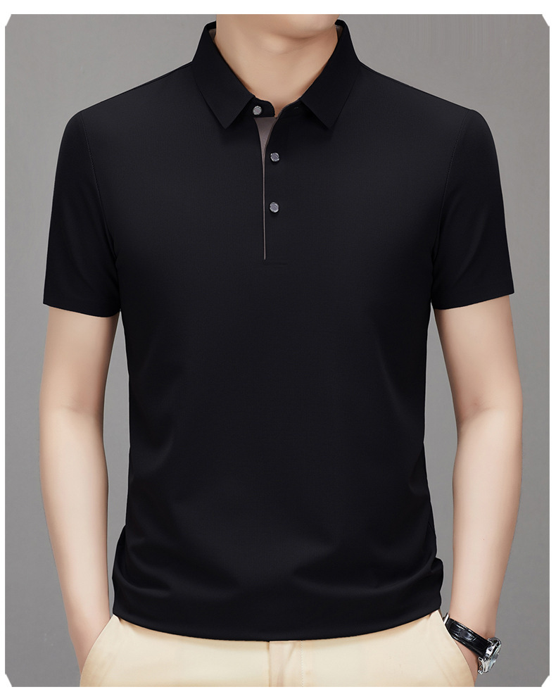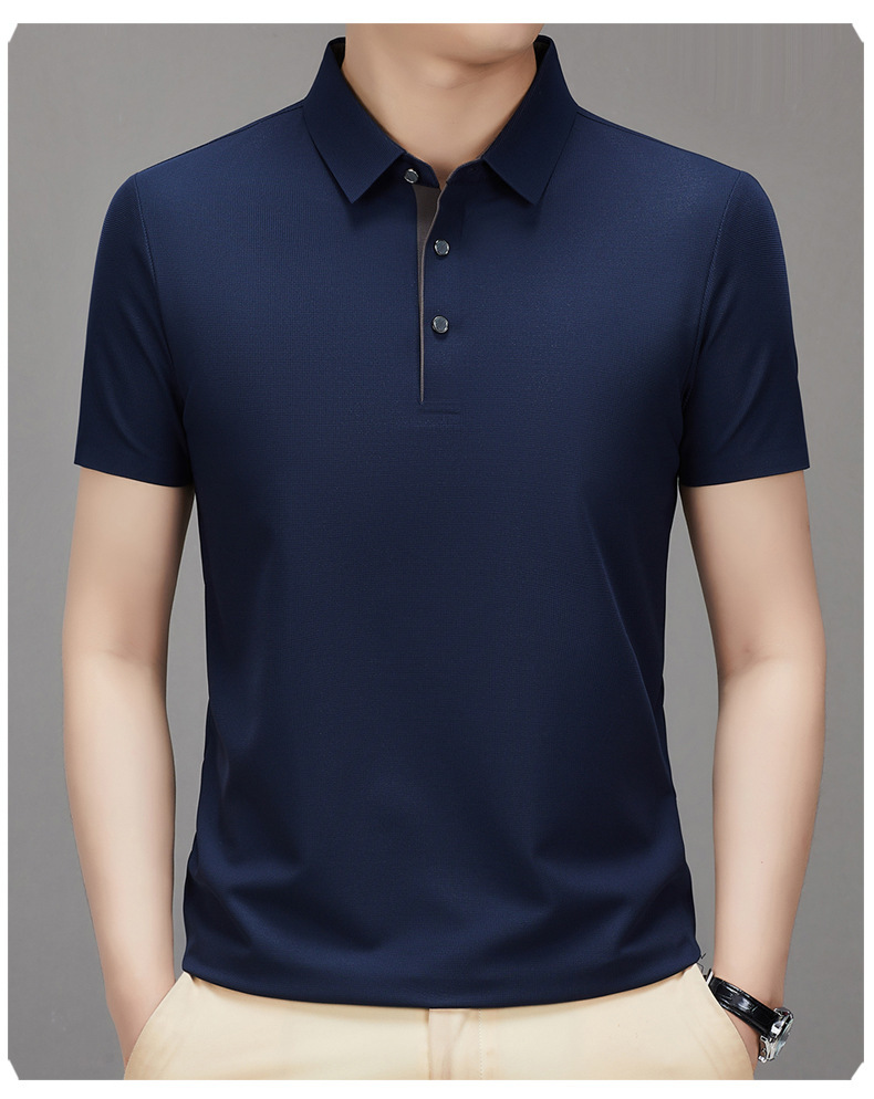 중년 아빠 반팔 티셔츠 남자 2024 여름 얇은 단색 칼라 주름 방지 트렌디 탑