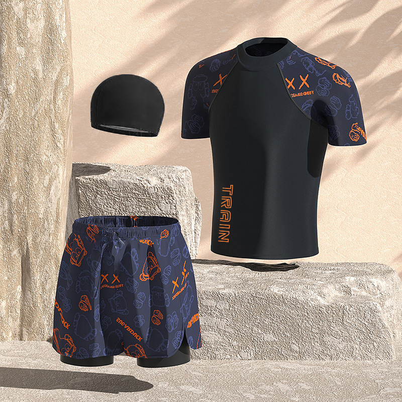 남자 아동복 새로운 패션 대형 복서 가짜 투피스 당황스러운 스포츠 수영 소년 및 아동 수영복스토어 가기