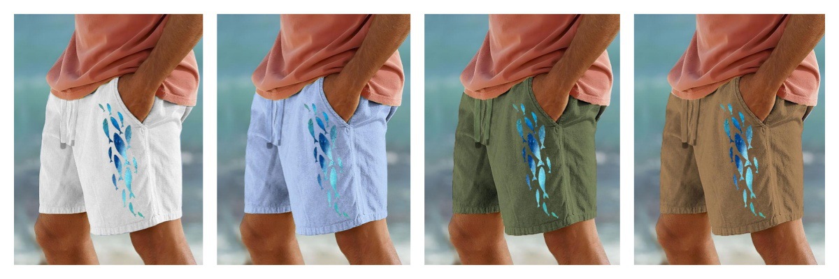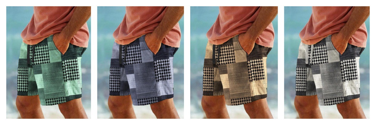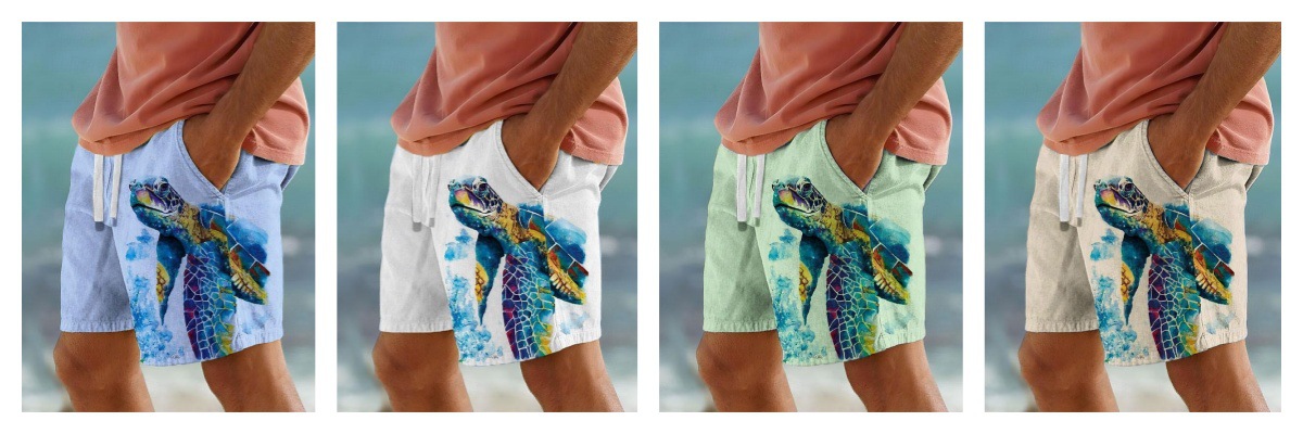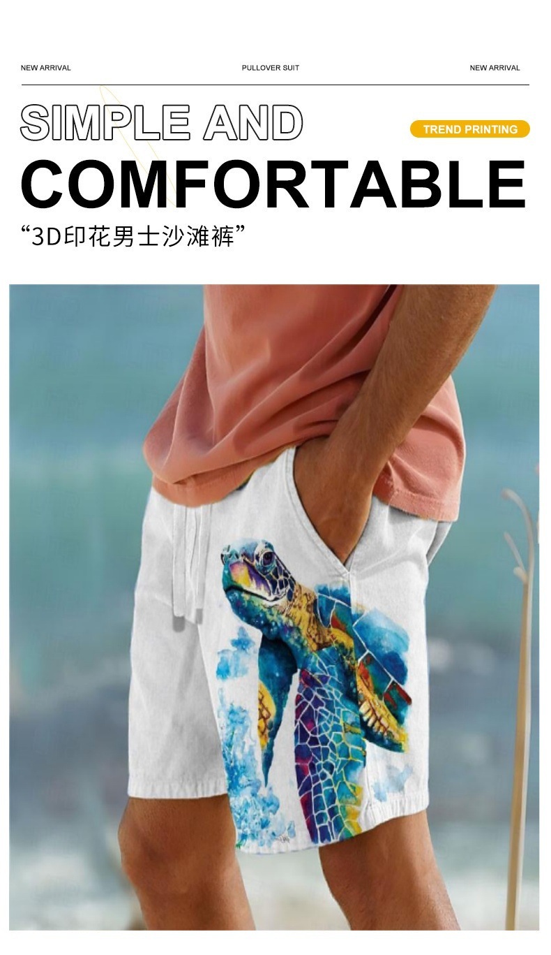 여름 AliExpress 대외 무역 남자 휴가 3D 줄무늬 컬러 블록 인쇄 허리 끈 하와이 휴일 반바지스토어 가기