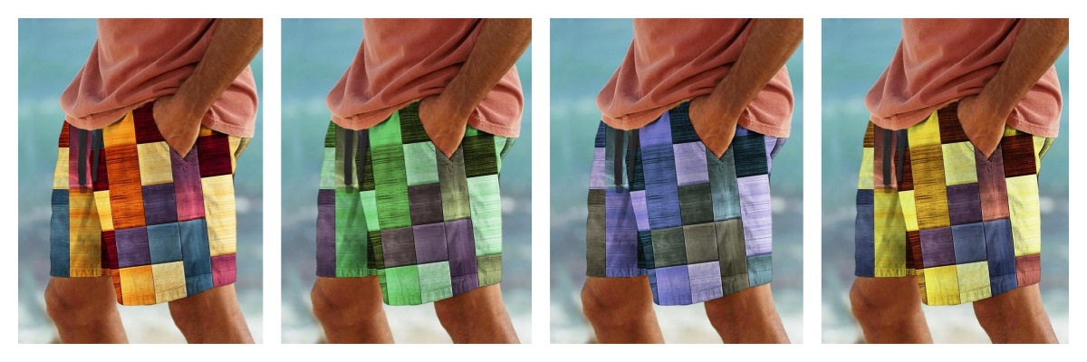여름 AliExpress 대외 무역 남자 휴가 3D 줄무늬 컬러 블록 인쇄 허리 끈 하와이 휴일 반바지