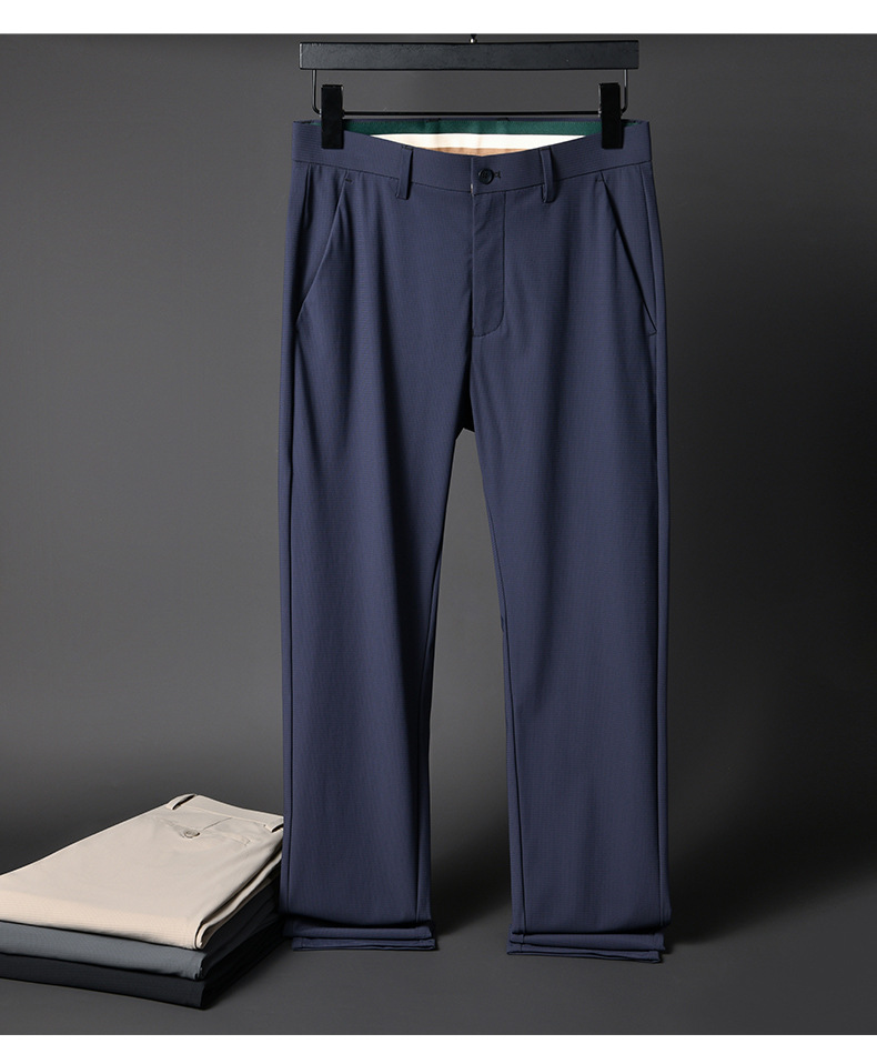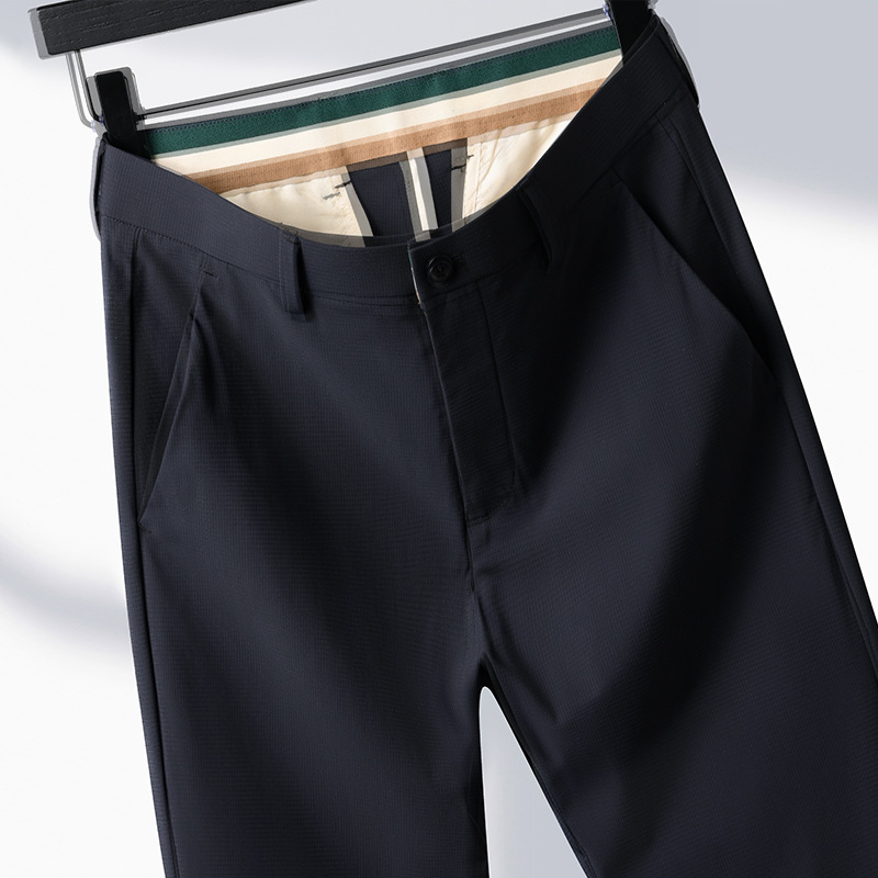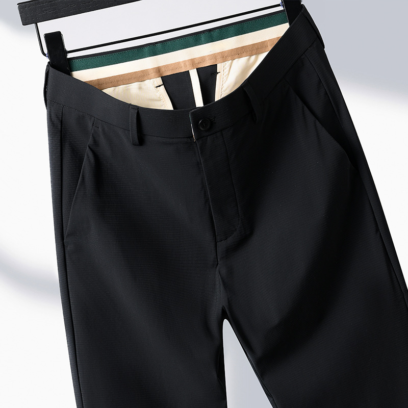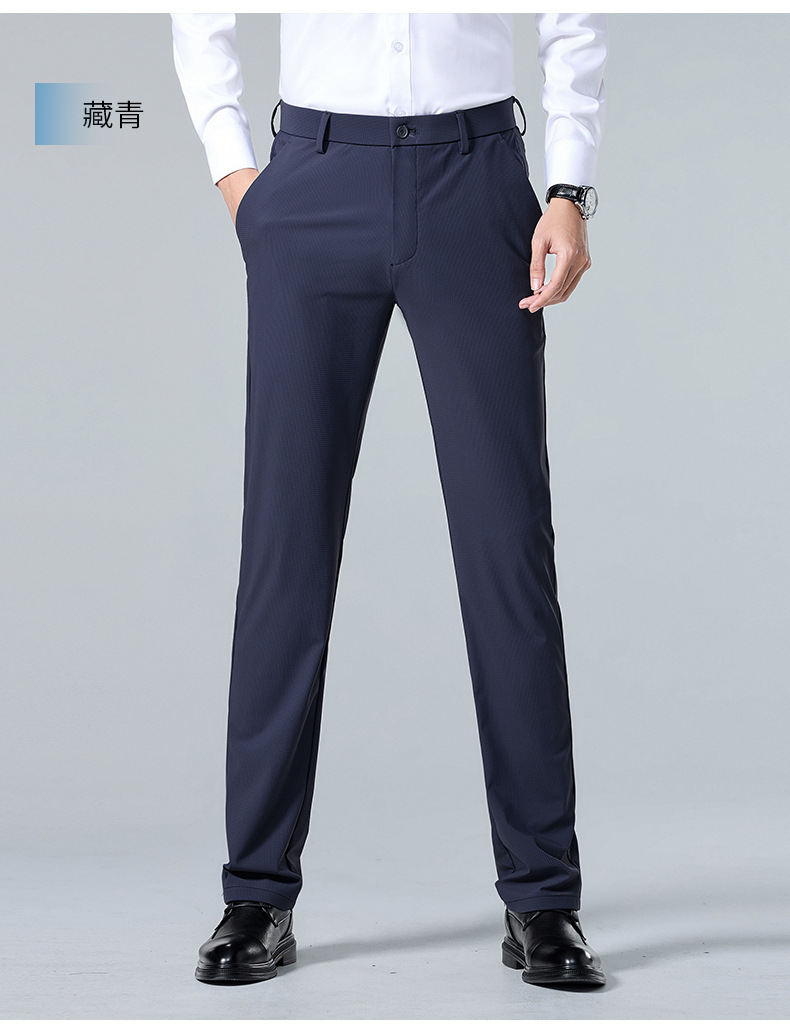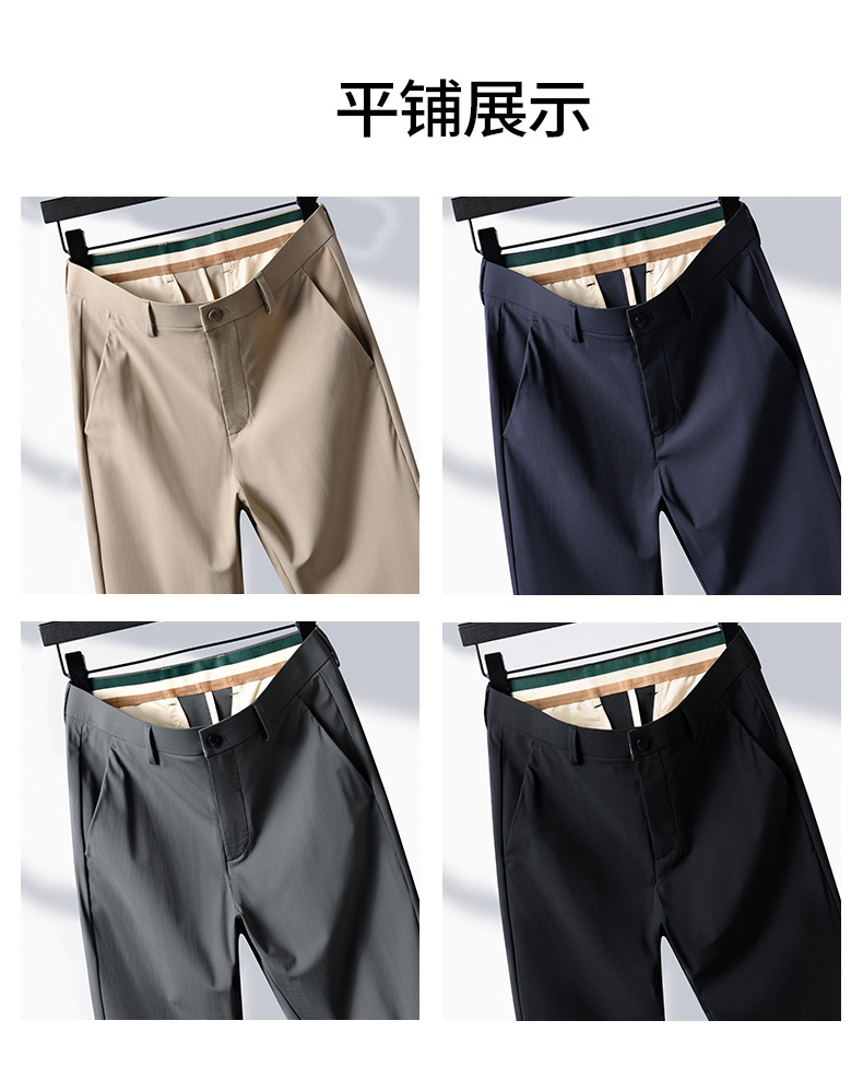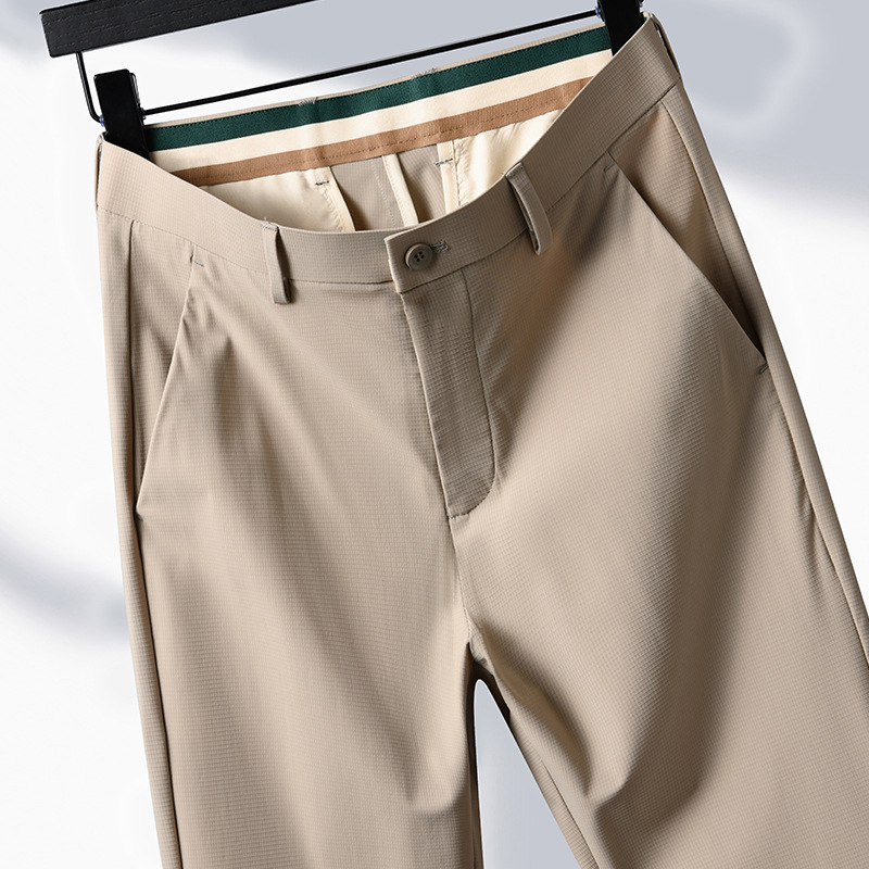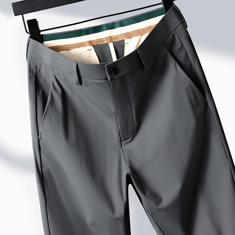 여름 남자 스트레치 아이스 실크 바지 얇은 캐주얼 바지 다림질 스트레이트 스루 비즈니스 바지 남성용 유행 아이스 느낌 긴 바지