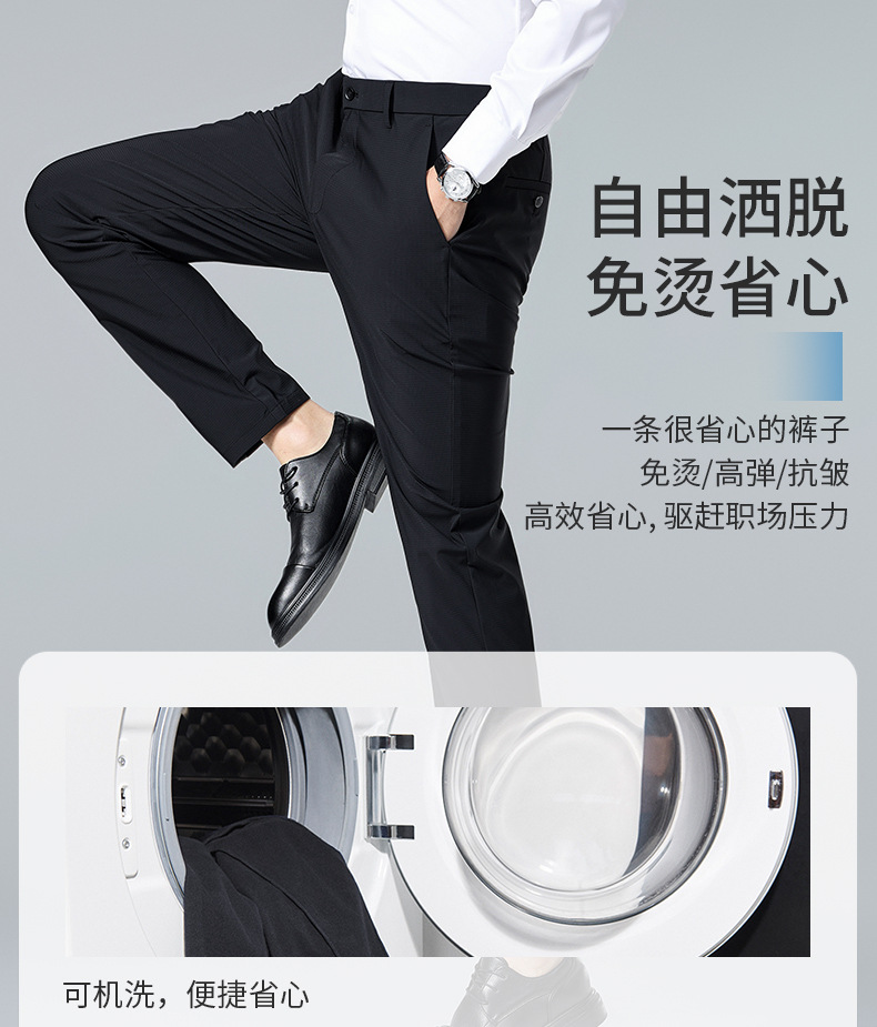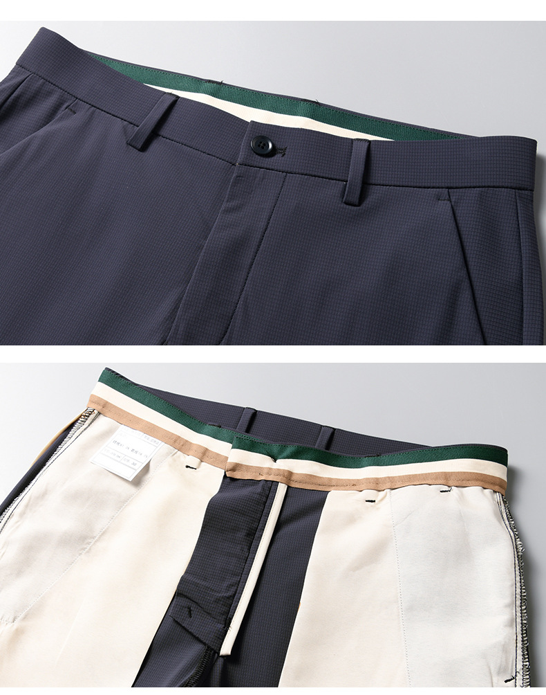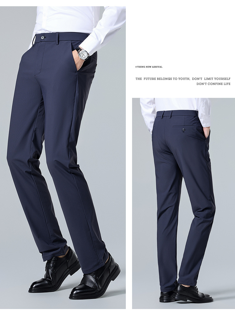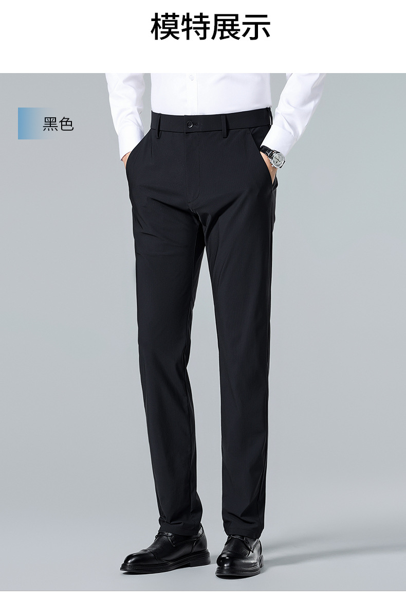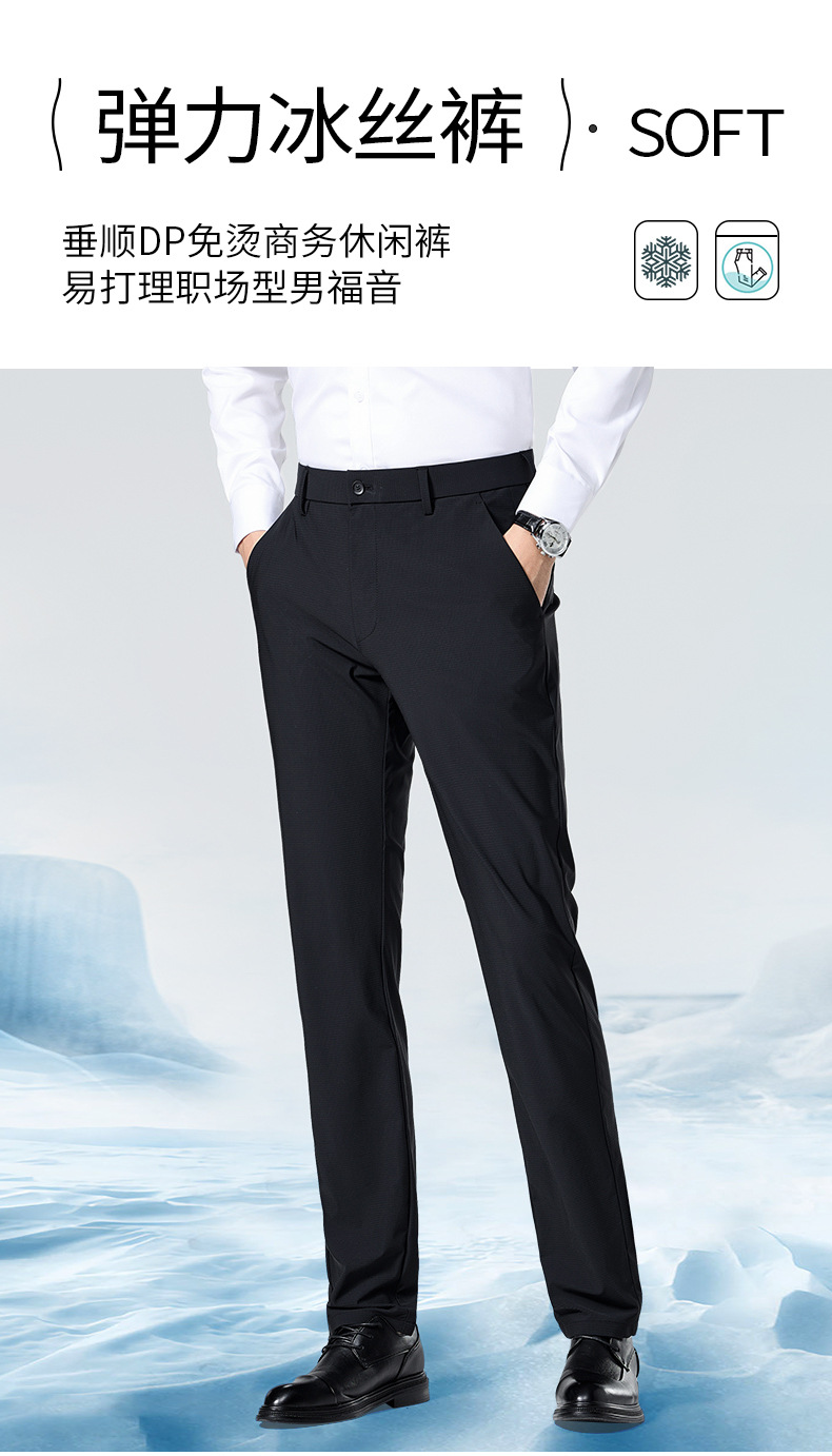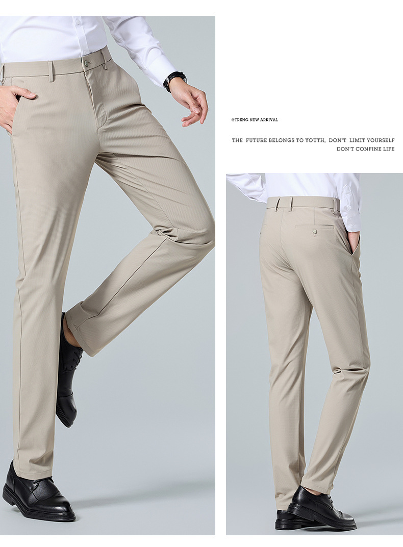 여름 남자 스트레치 아이스 실크 바지 얇은 캐주얼 바지 다림질 스트레이트 스루 비즈니스 바지 남성용 유행 아이스 느낌 긴 바지
