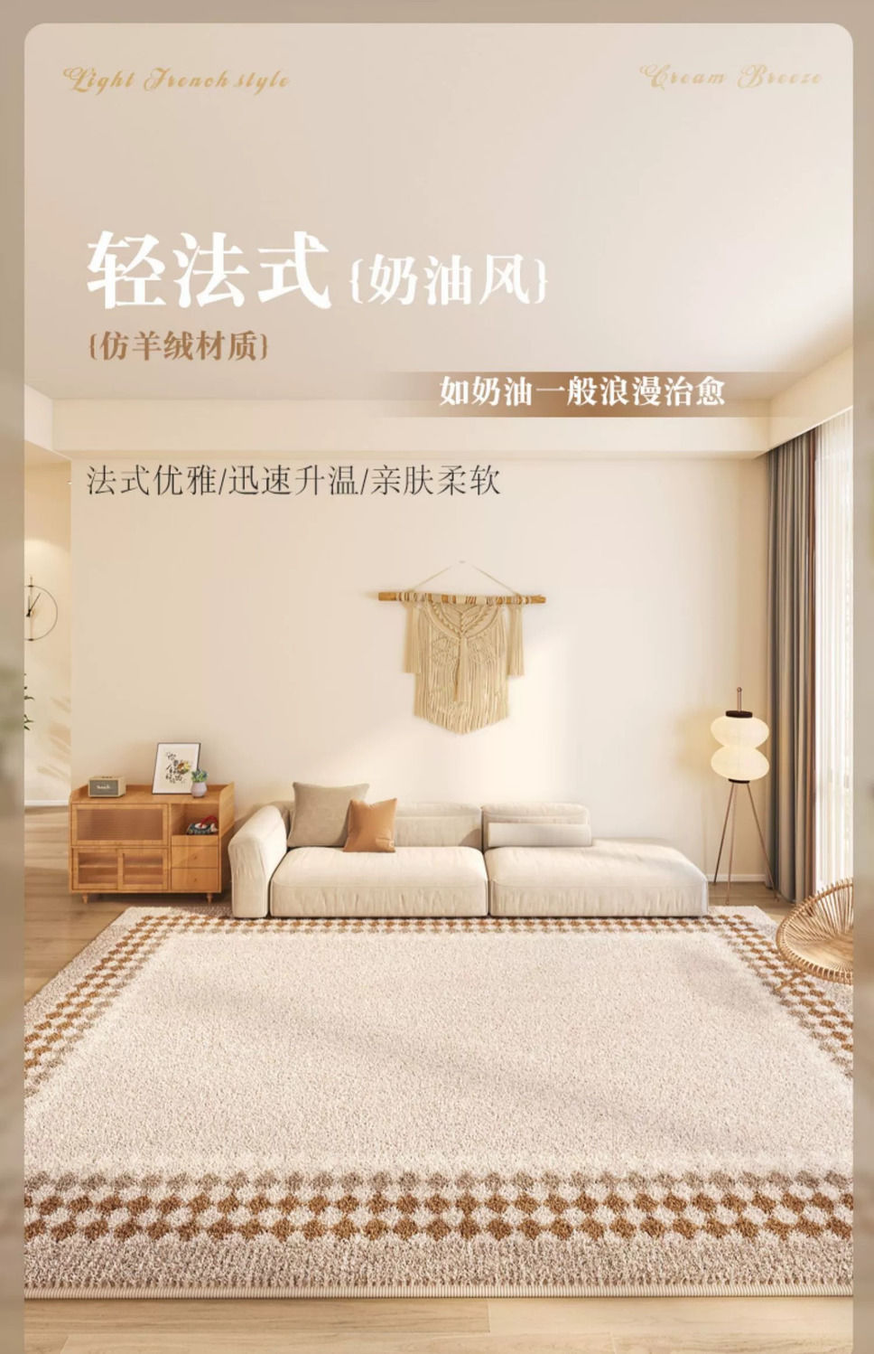 크림 스타일 거실 전체 스프레드 캐시미어 얼룩 방지 카펫 따뜻한 소파 커피 테이블 카펫 침실 미끄럼 방지 침대 옆 담요스토어 가기