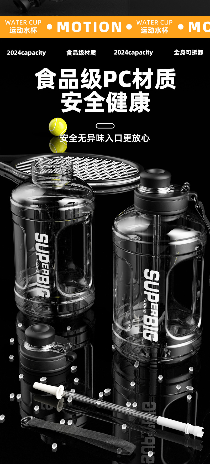 여름 초대형 용량 야외 스포츠 주전자 고온 저항하는 톤 톤 배럴 낙하 방지 배 플라스틱 주전자 컵 사용자 정의스토어 가기