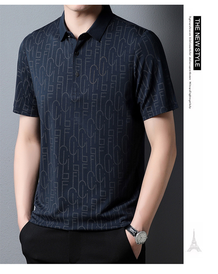 반팔 폴로 셔츠 남자 고급 2023 여름 새로운 중년 아빠 느슨한 캐주얼 반팔 옷깃 탑 티셔츠