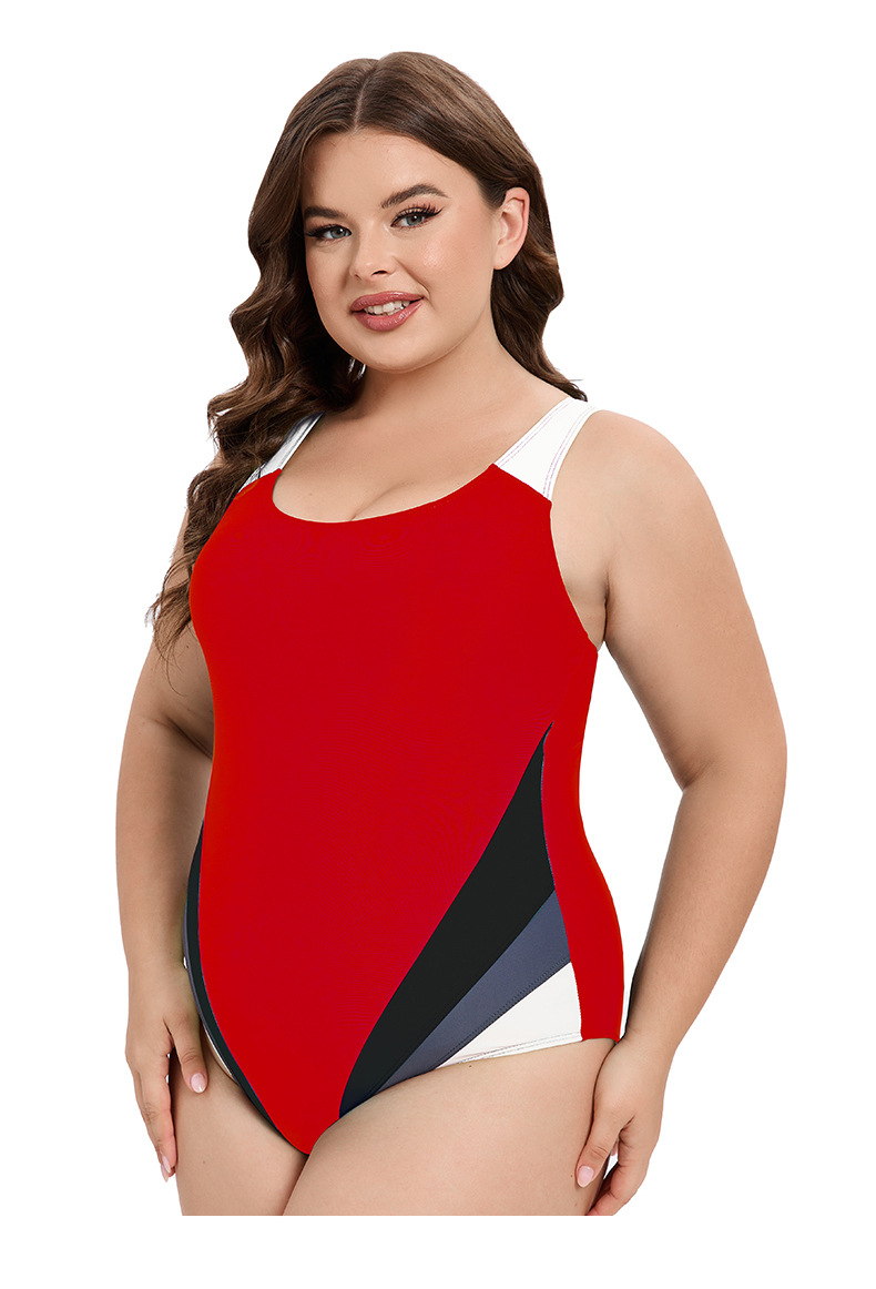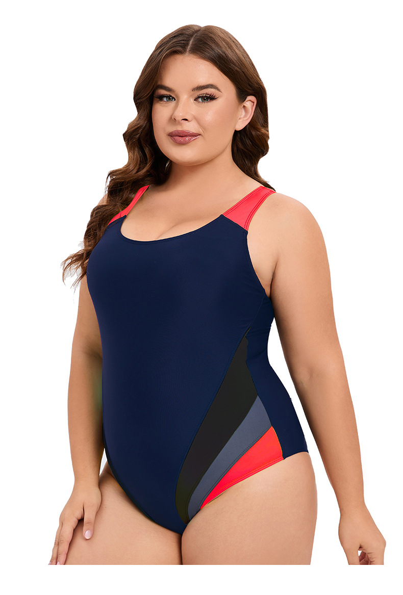 2024 아마존 새로운 컬러 블록 스포츠 원피스 대형 수영복 여성 국경 유럽 및 미국 백리스 삼각형 보수 수영복