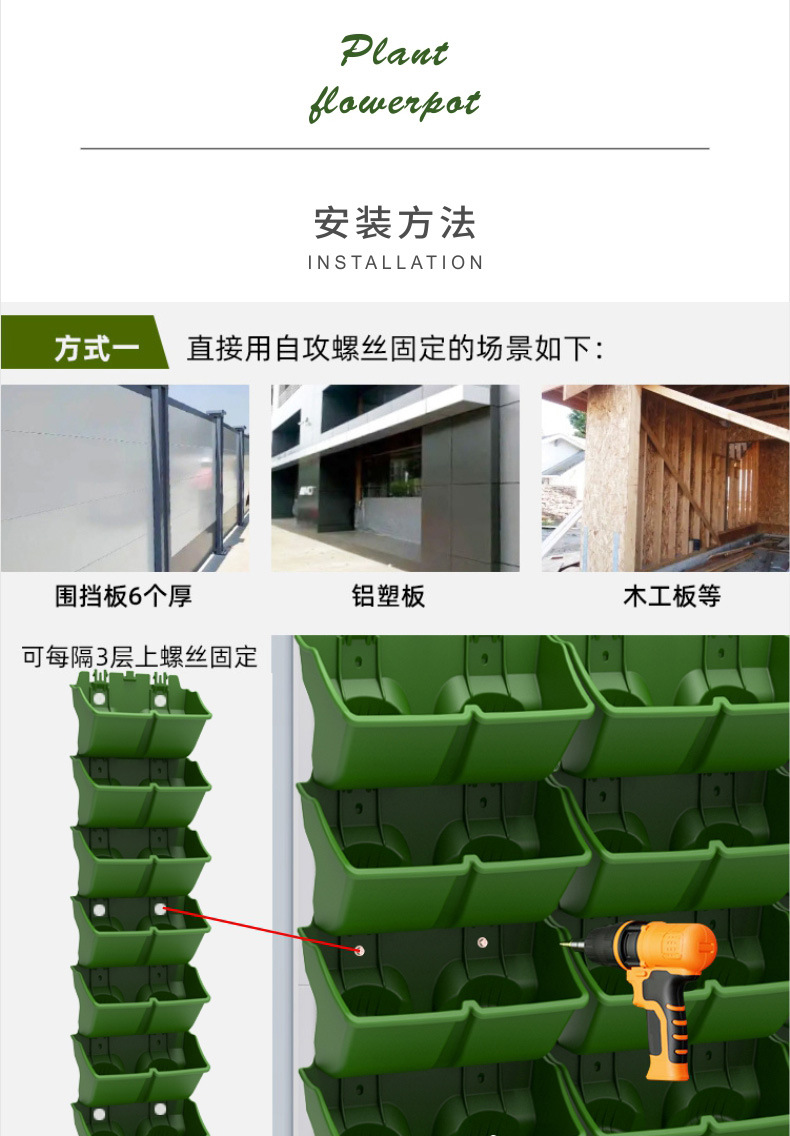 3 차원 녹화 심기 상자 조합 공장 벽 야외 수직 벽걸이 꽃 냄비 컨테이너 플라스틱 심기 벽 심기 냄비스토어 가기