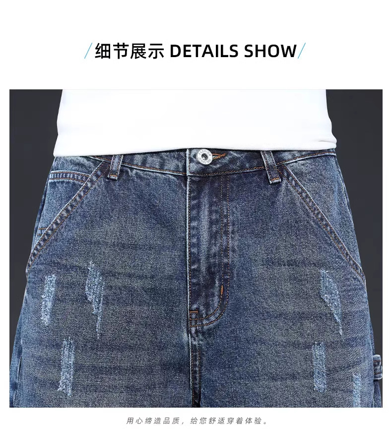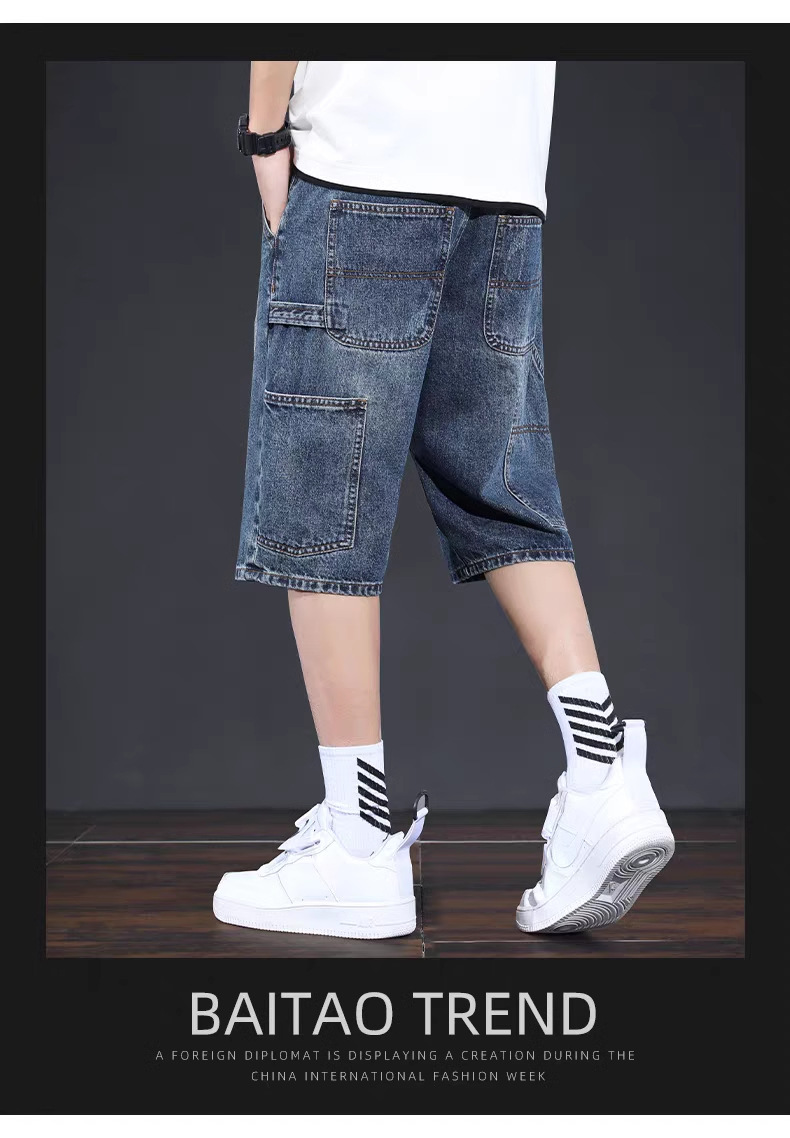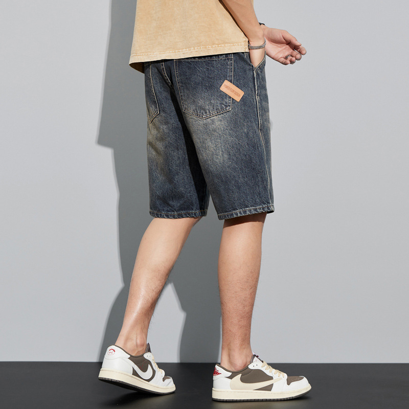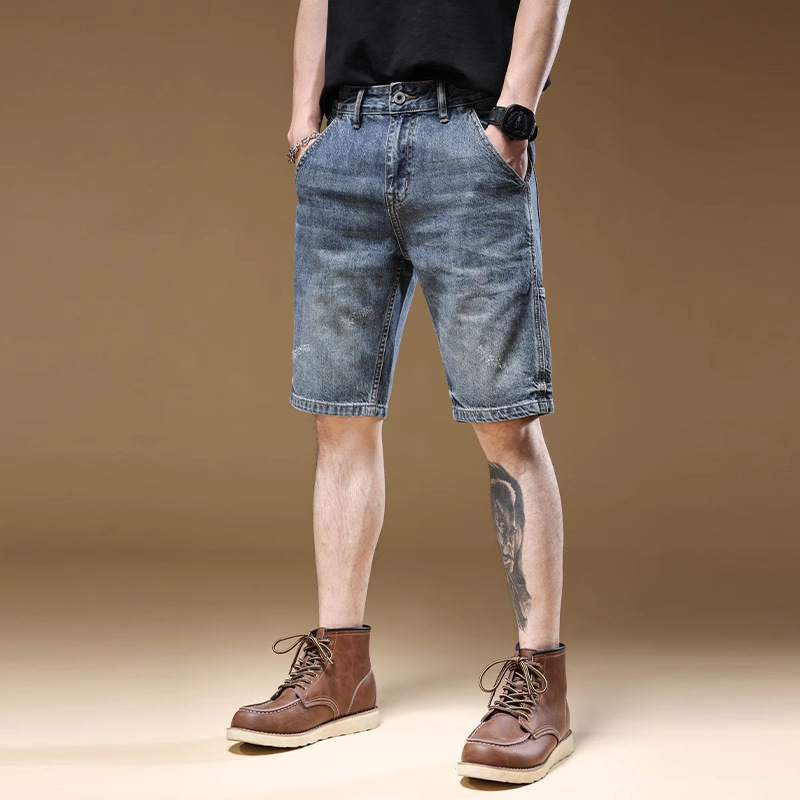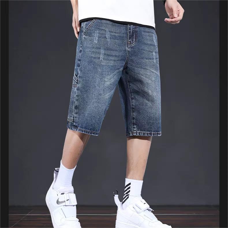 데님 반바지 남성 여름 얇은 미국 스타일 트렌디 브랜드 툴링 바지 캐주얼 비 스트레치 느슨한 스트레이트 바지스토어 가기