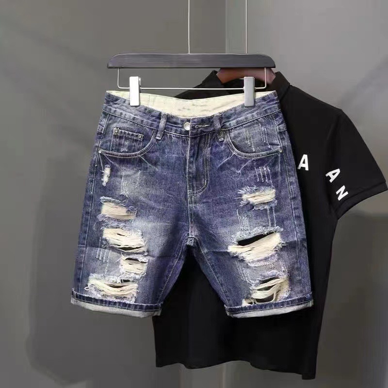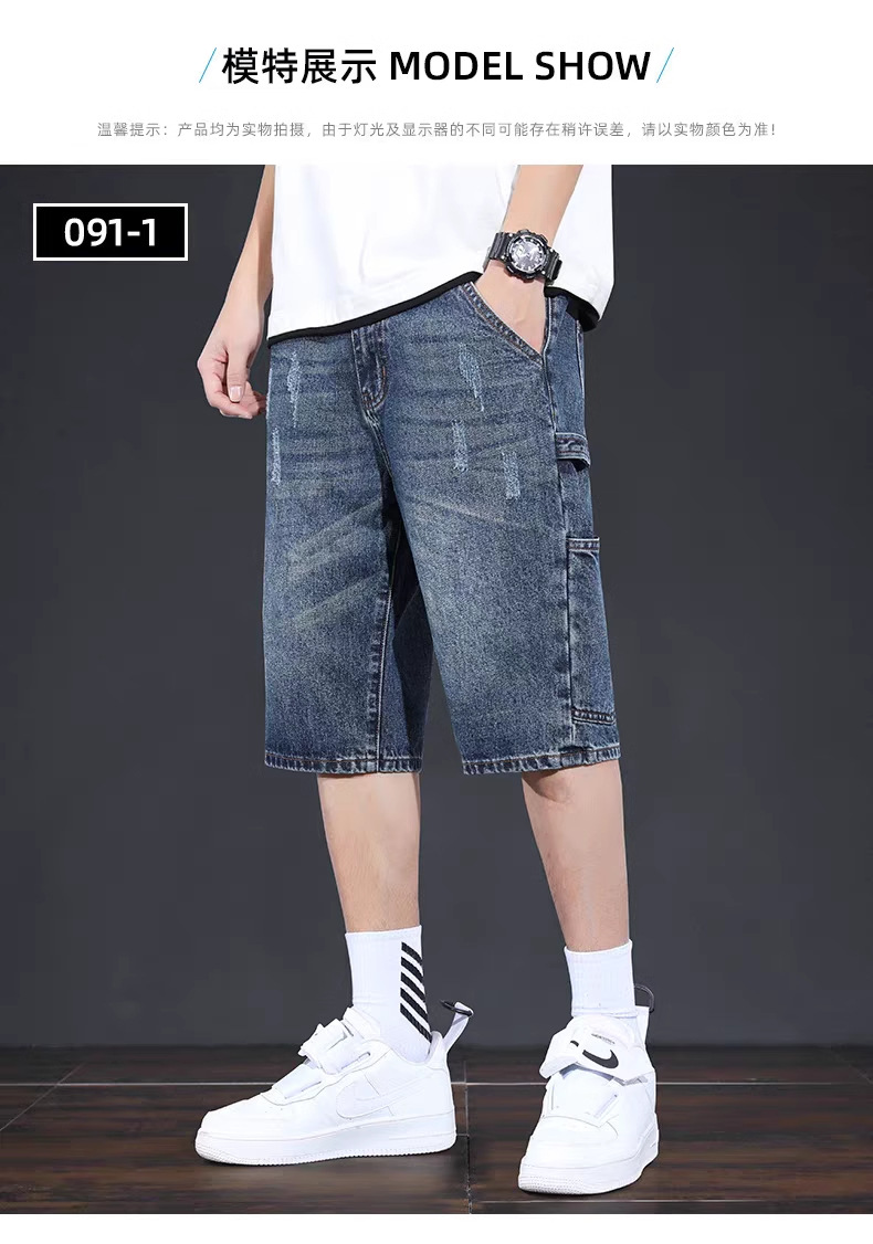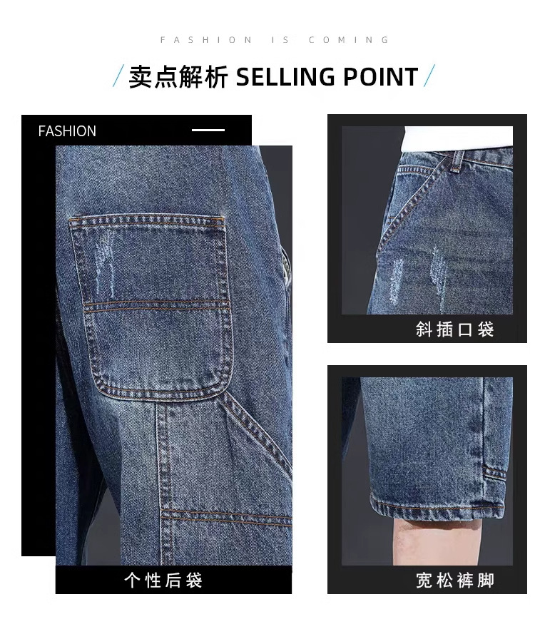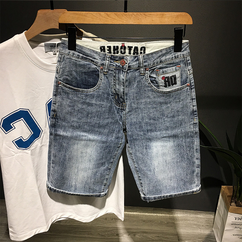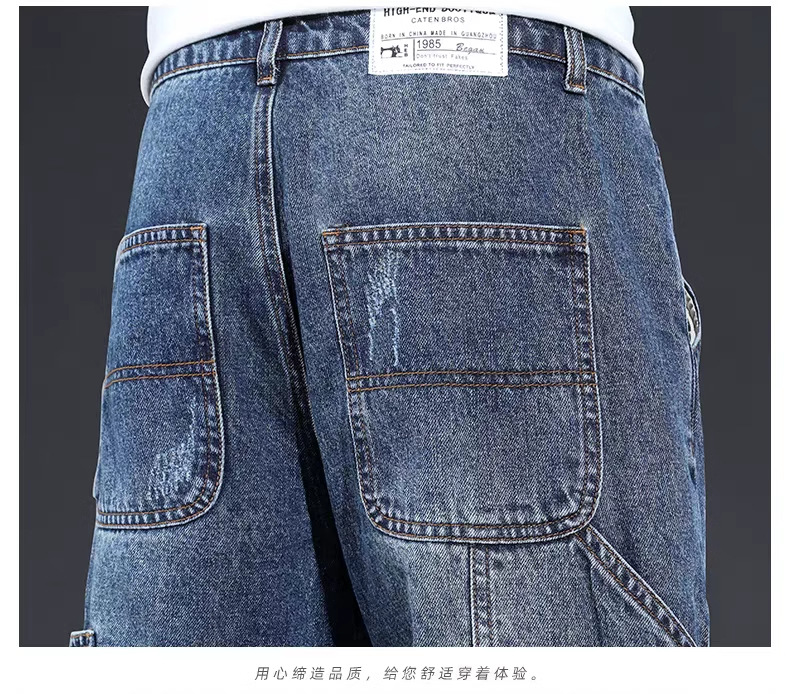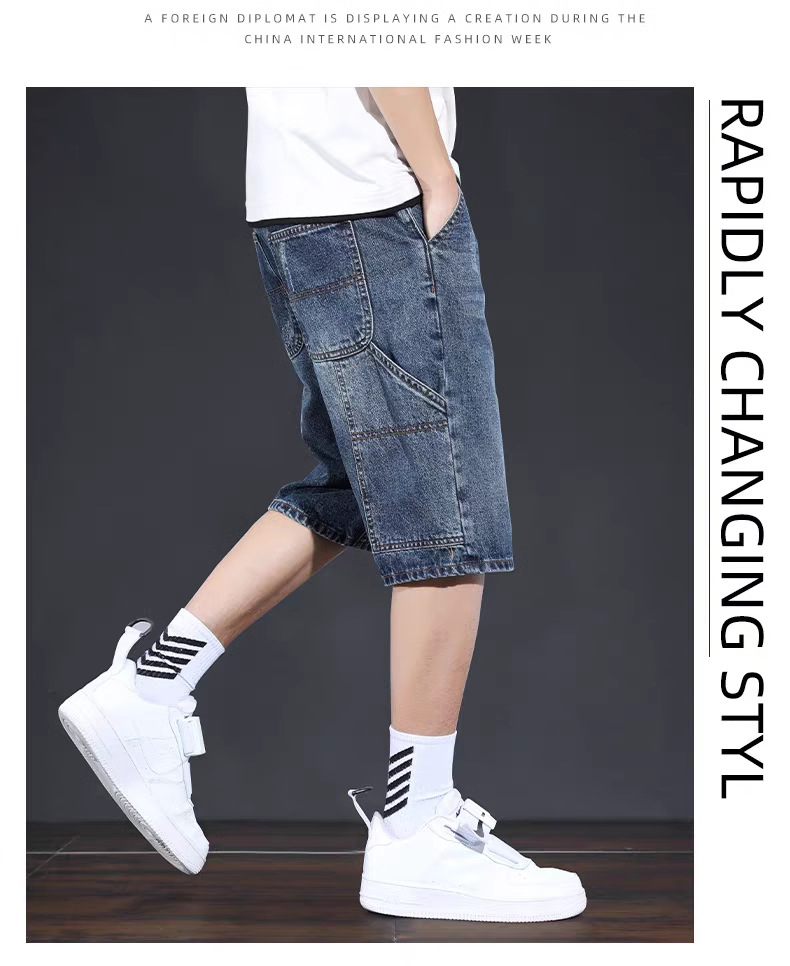데님 반바지 남성 여름 얇은 미국 스타일 트렌디 브랜드 툴링 바지 캐주얼 비 스트레치 느슨한 스트레이트 바지스토어 가기