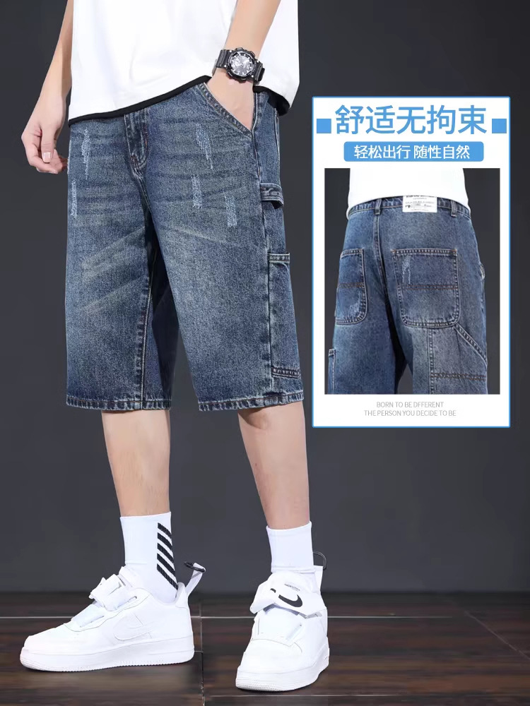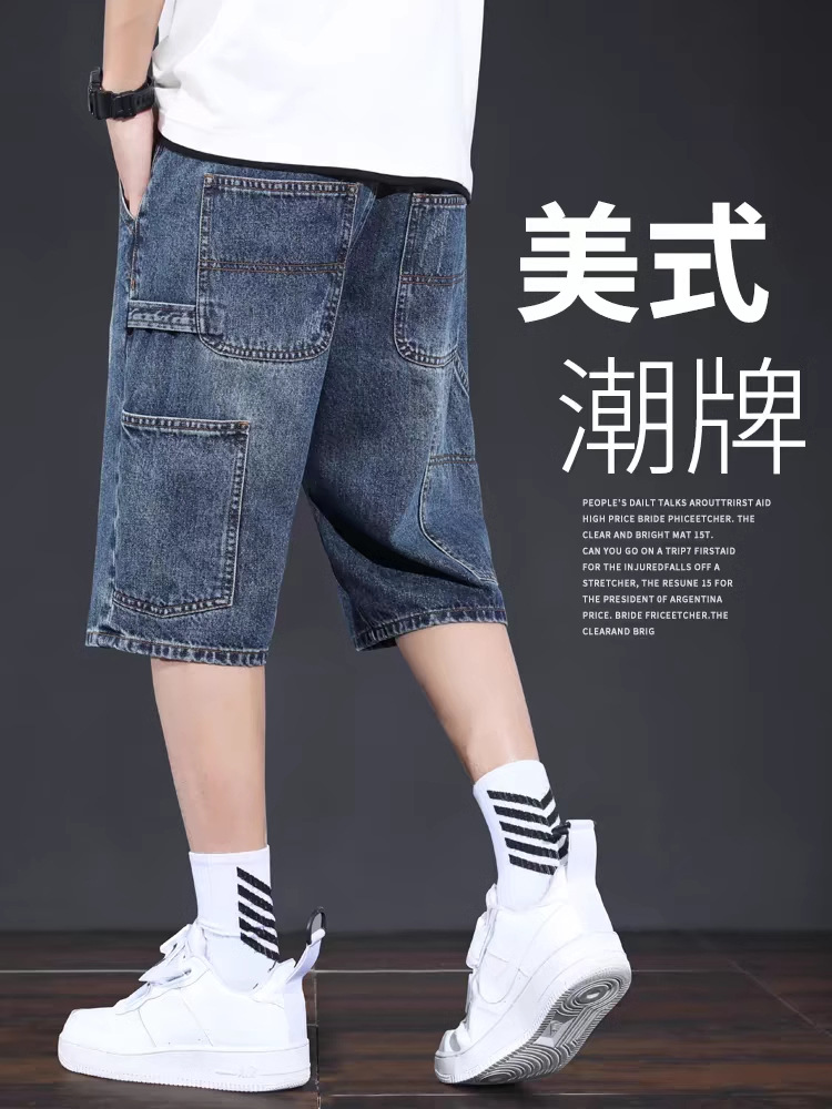 데님 반바지 남성 여름 얇은 미국 스타일 트렌디 브랜드 툴링 바지 캐주얼 비 스트레치 느슨한 스트레이트 바지