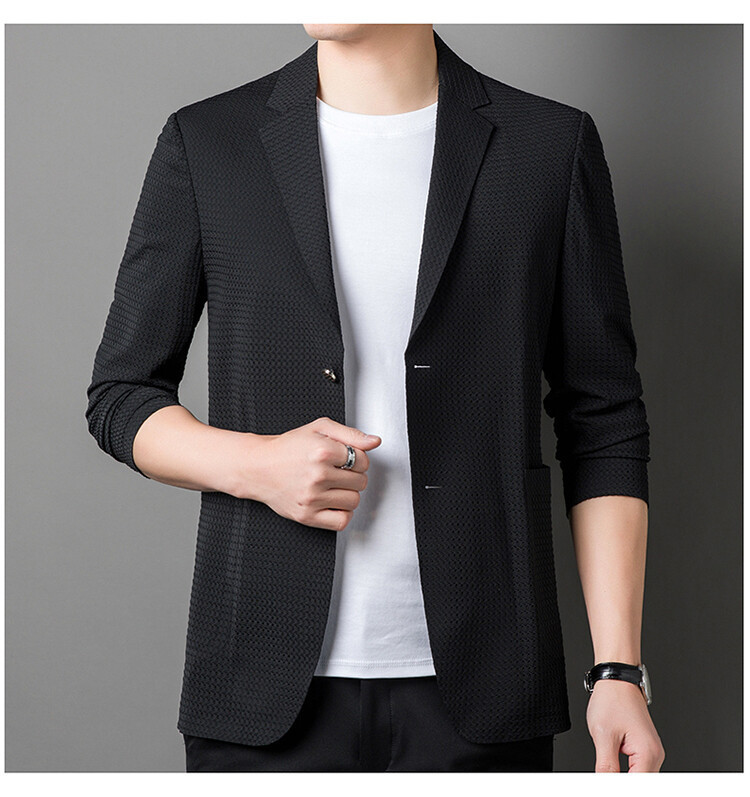 商务绅士宽松型西装领2024年春季中年男装纯色外套时尚休闲开衫男