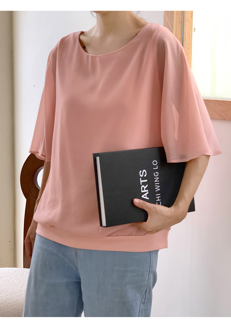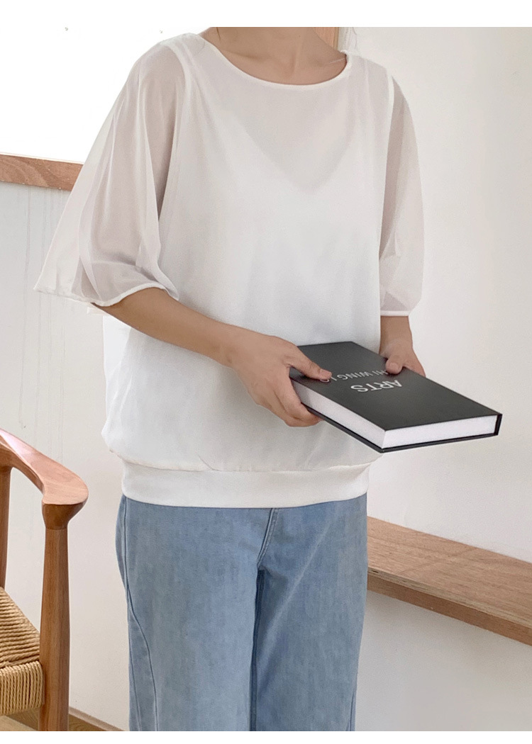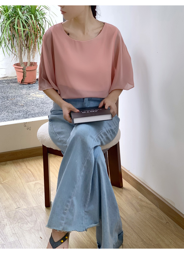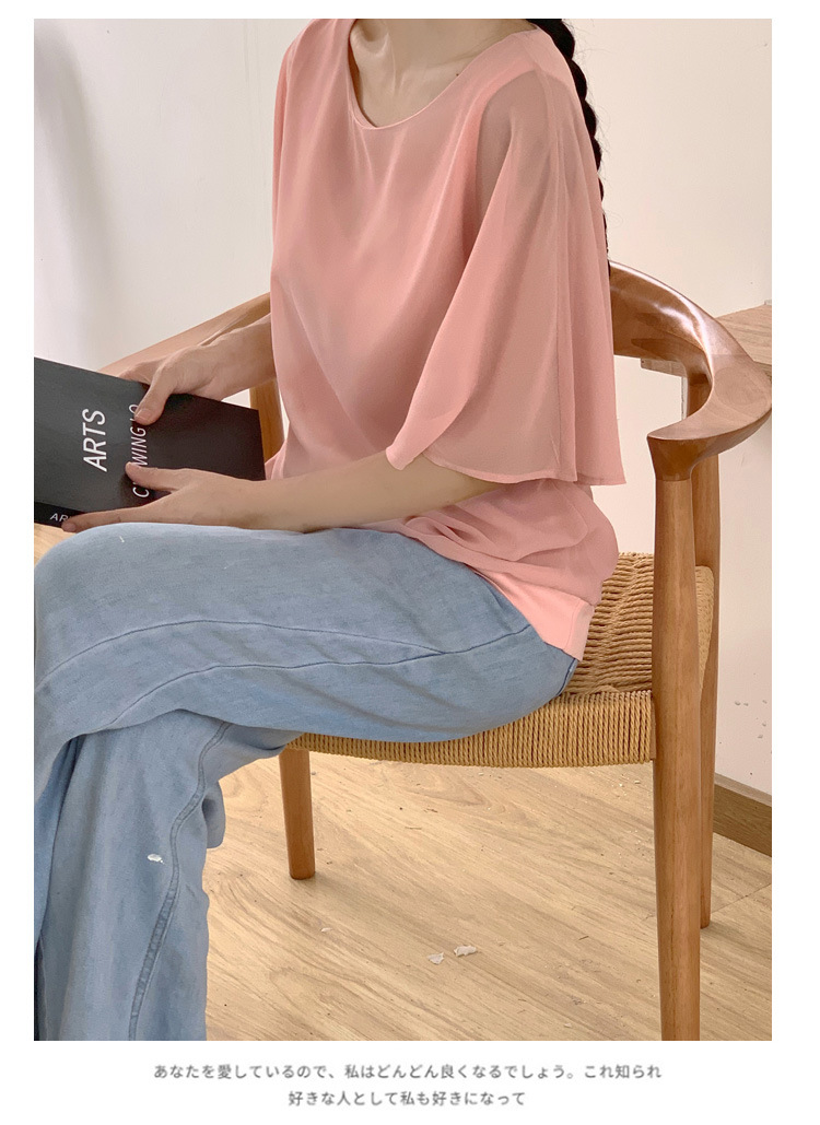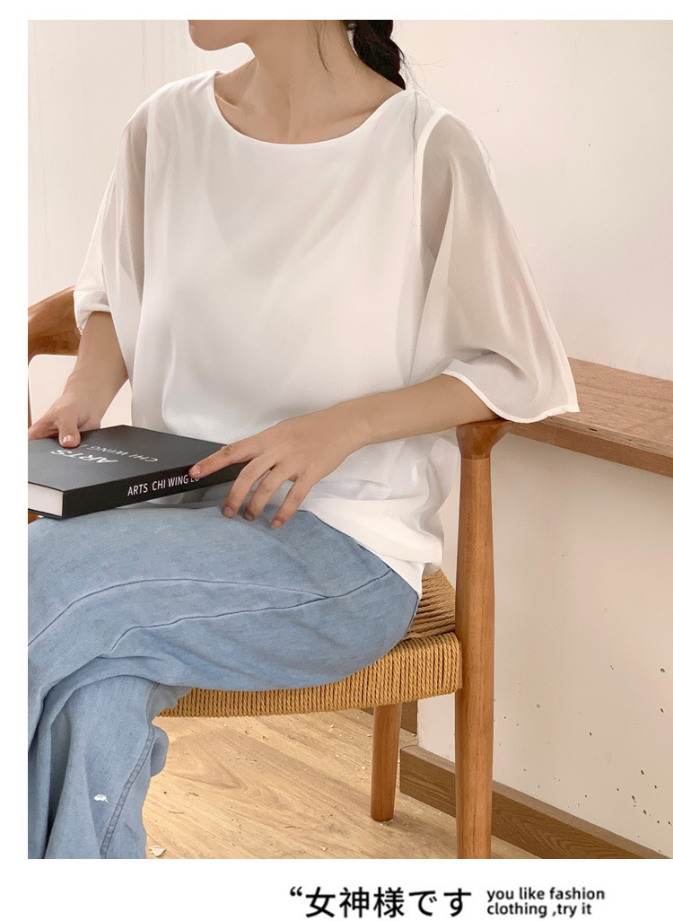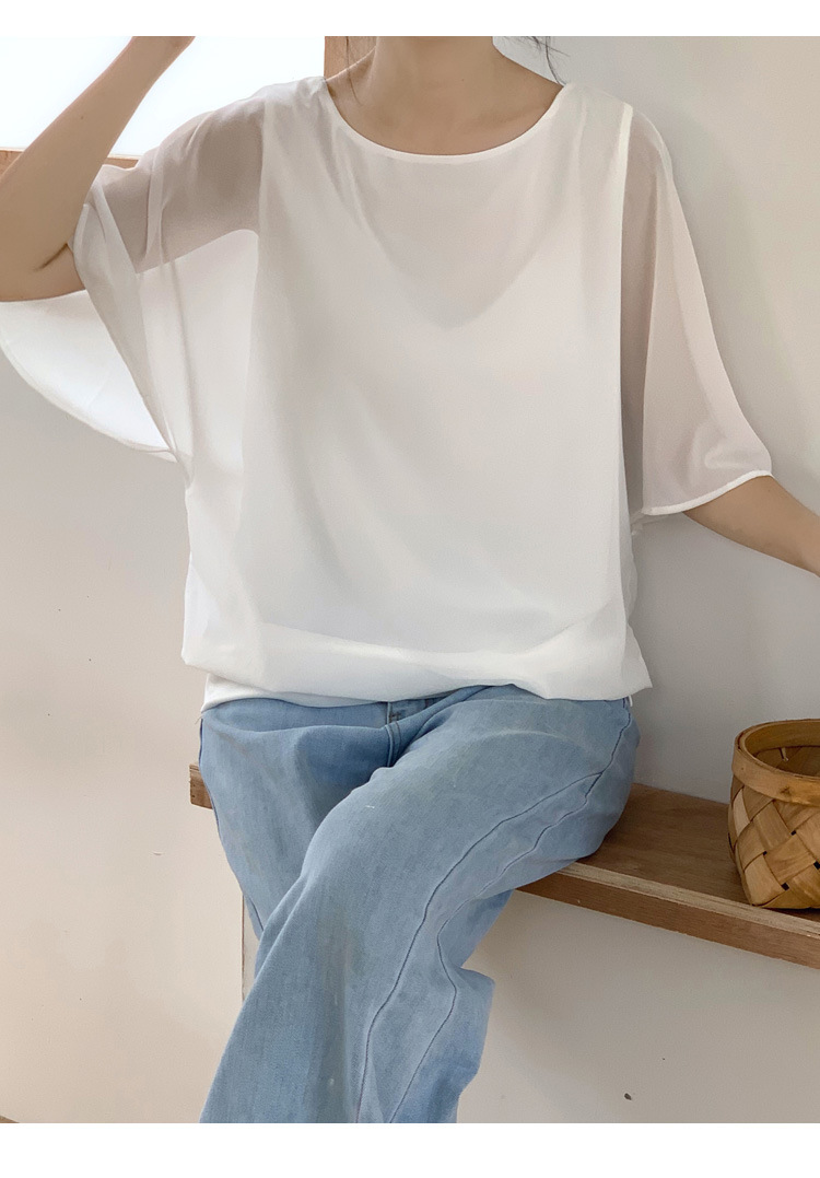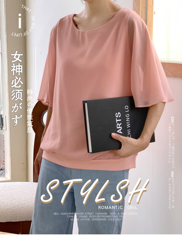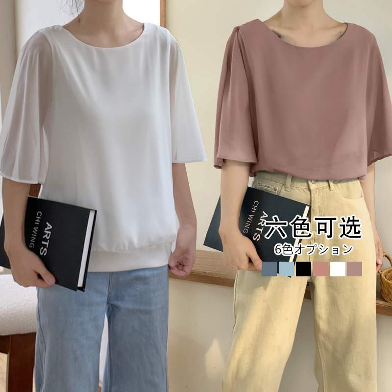 일본과 한국식 롯데 2024 여름 새 민소매 배트 모빌 셔츠 느슨한 라운드 넥 캐주얼 올매치 쉬폰 셔츠