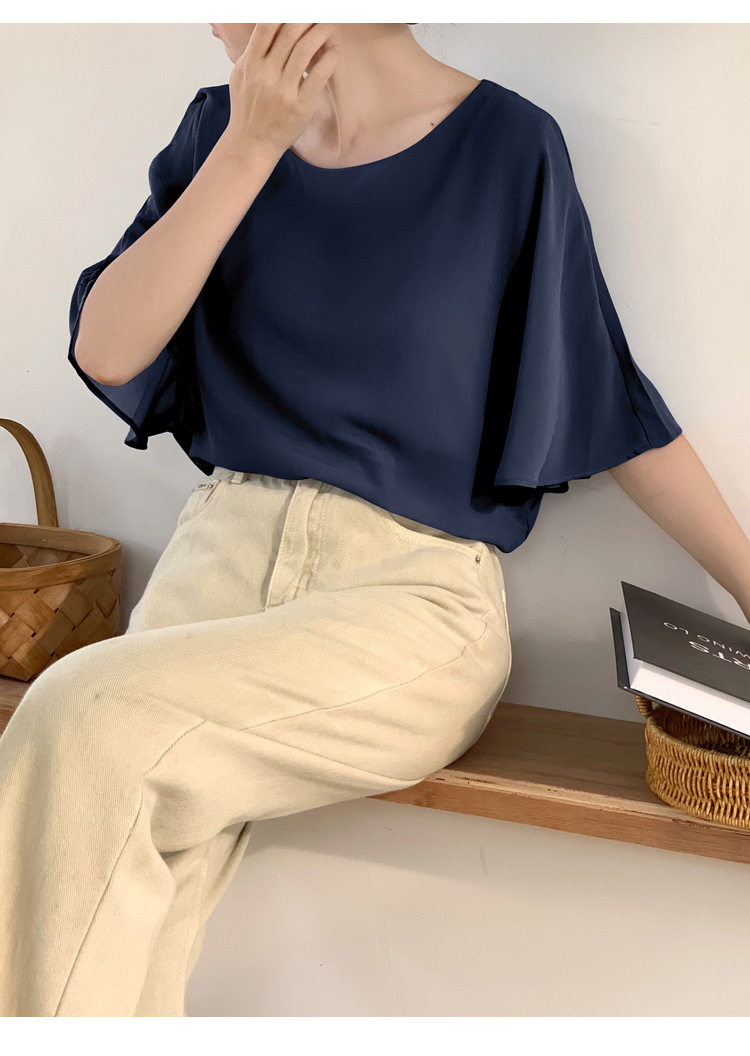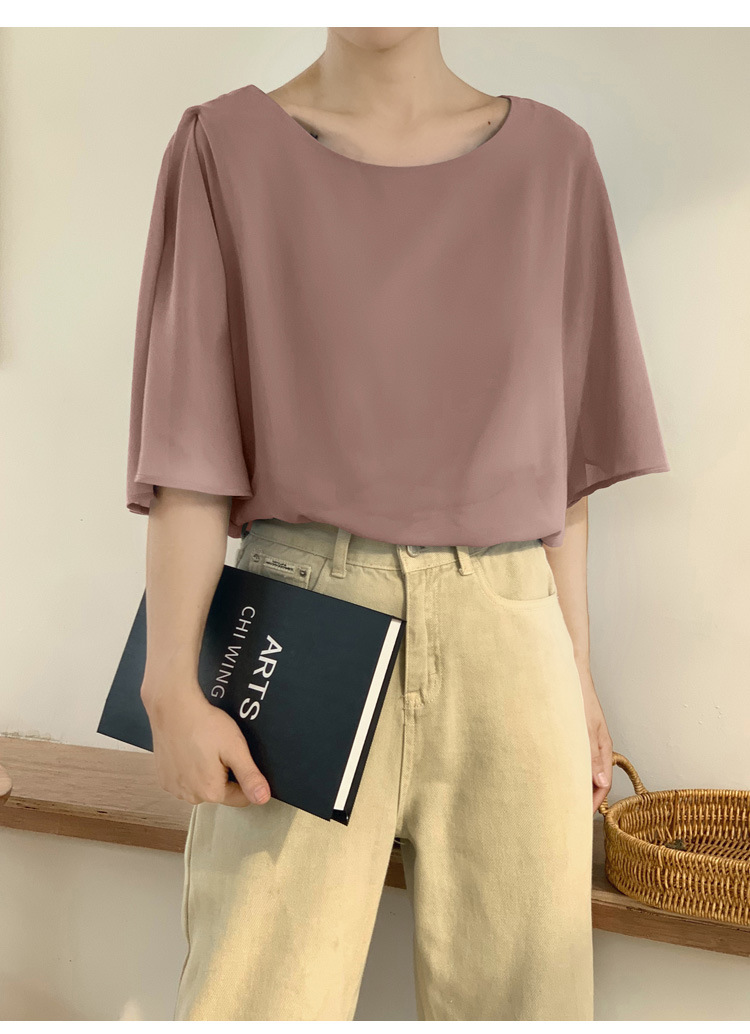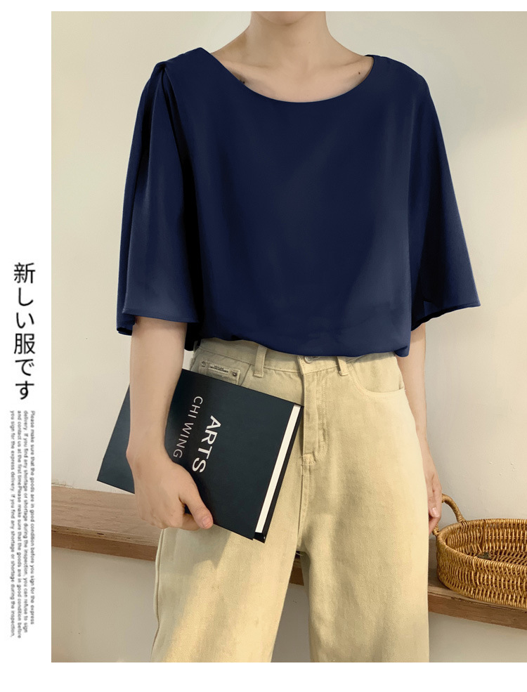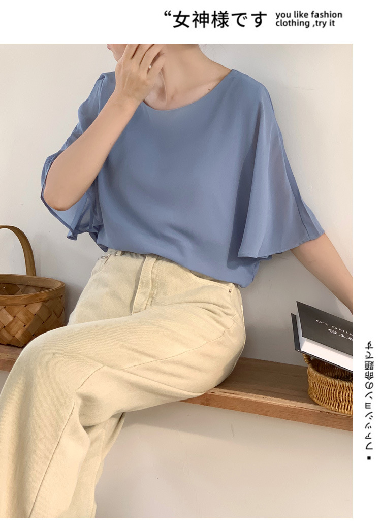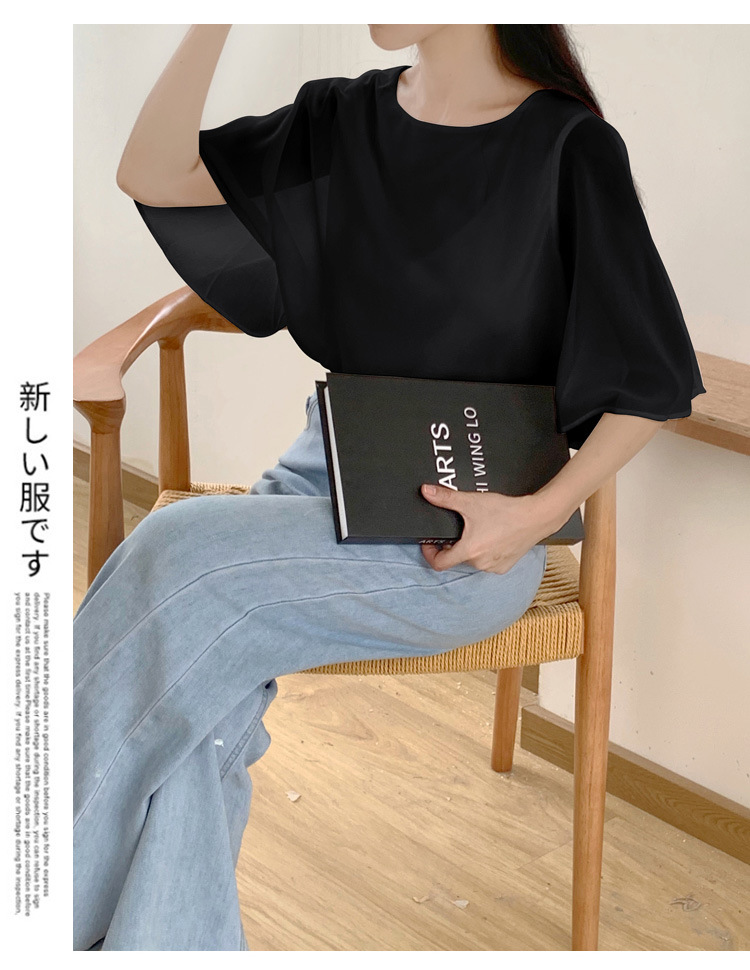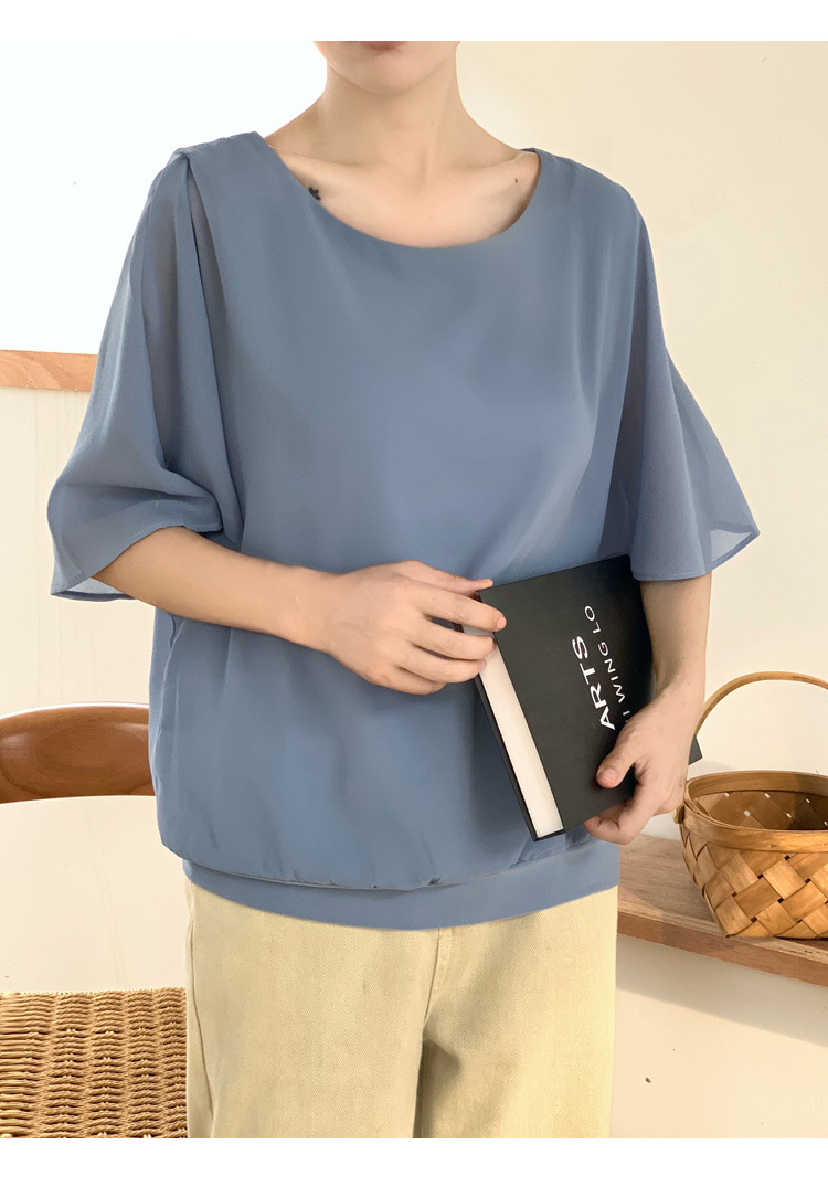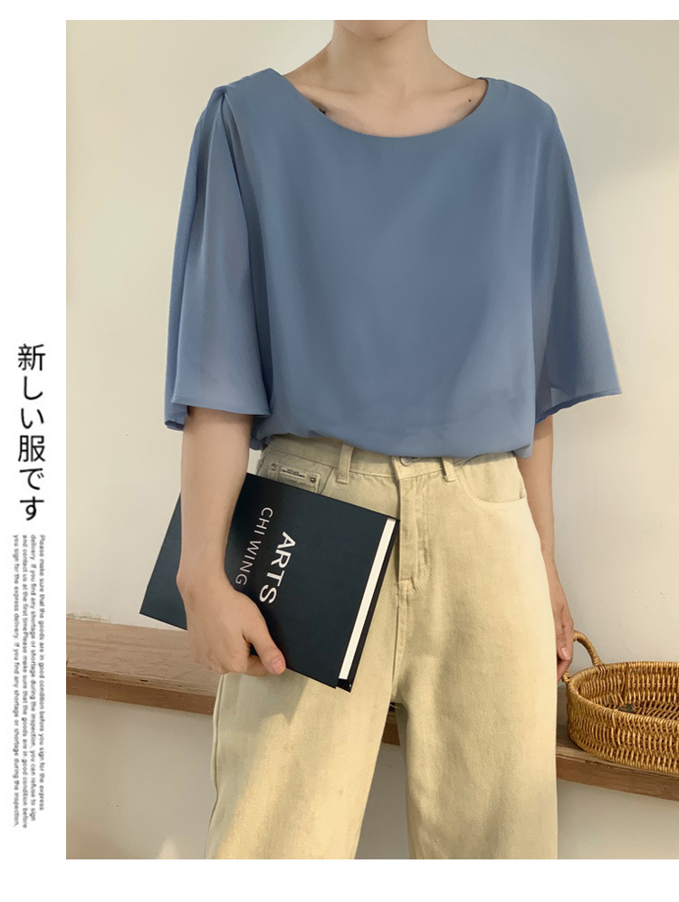 일본과 한국식 롯데 2024 여름 새 민소매 배트 모빌 셔츠 느슨한 라운드 넥 캐주얼 올매치 쉬폰 셔츠