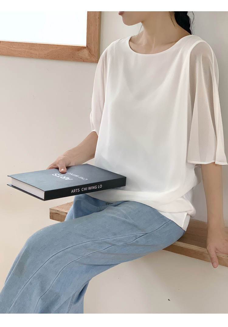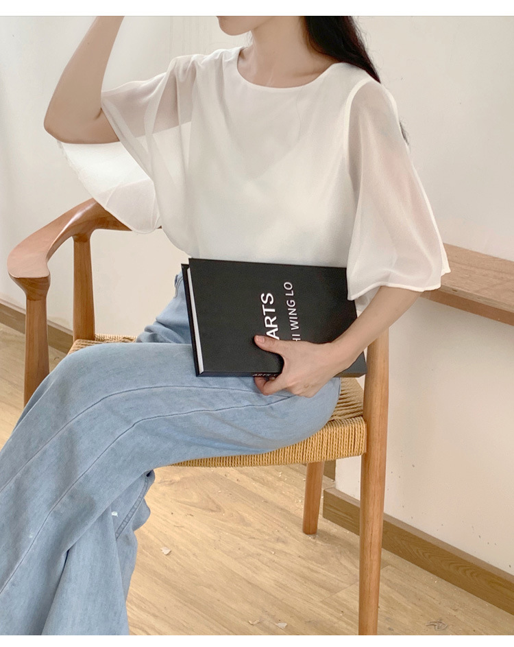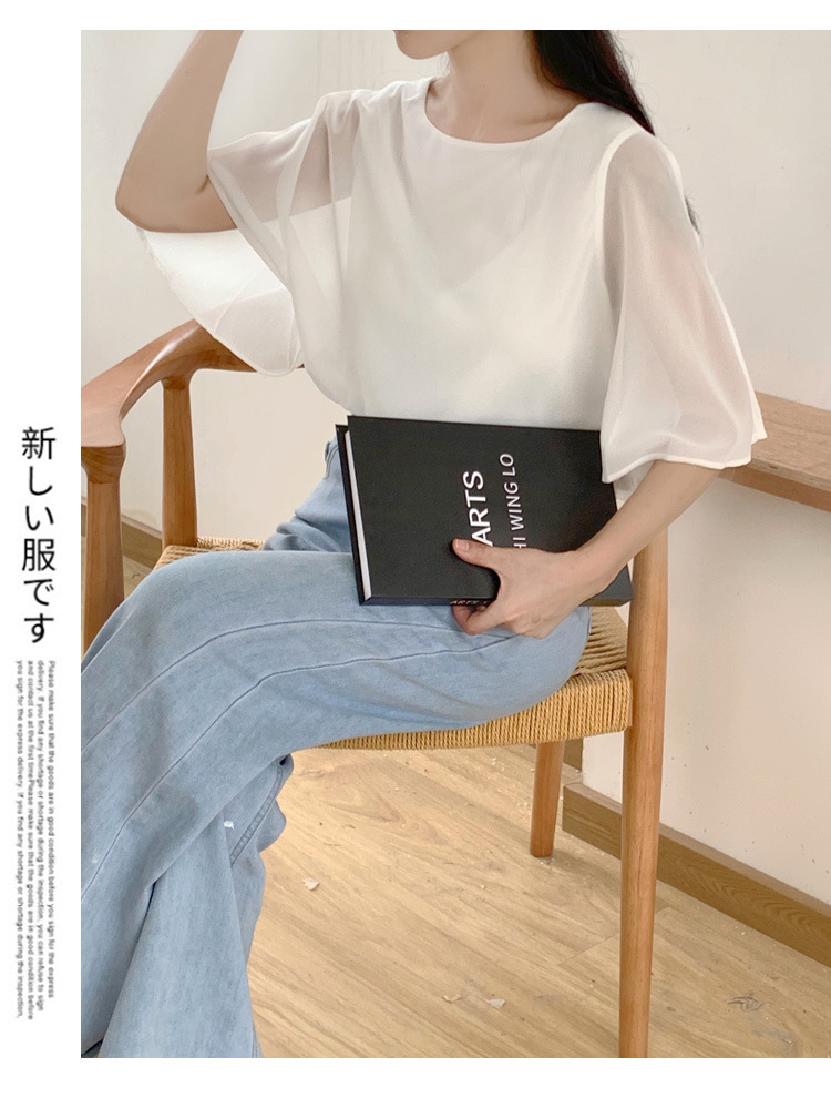 일본과 한국식 롯데 2024 여름 새 민소매 배트 모빌 셔츠 느슨한 라운드 넥 캐주얼 올매치 쉬폰 셔츠스토어 가기