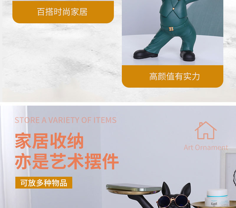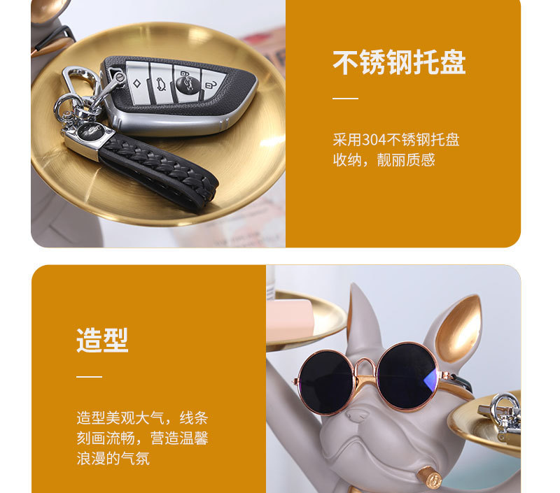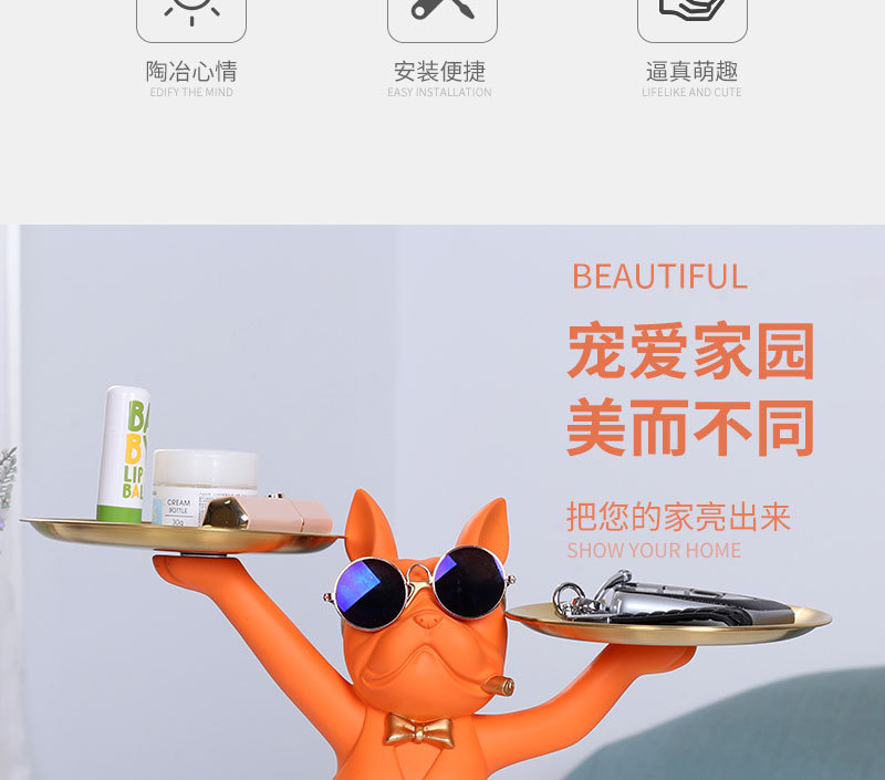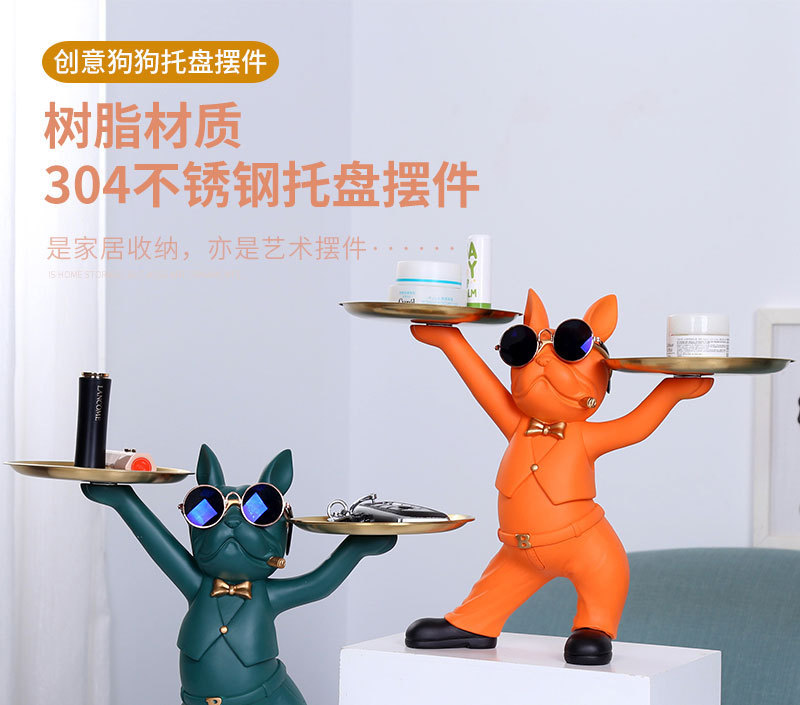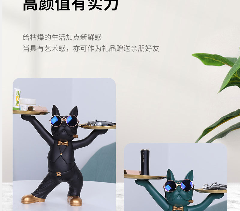 입구 장식품 선글라스를 쓴 멋진 불독 트레이 창의적인 티 테이블 수납 장식 웨딩 창의적 수납