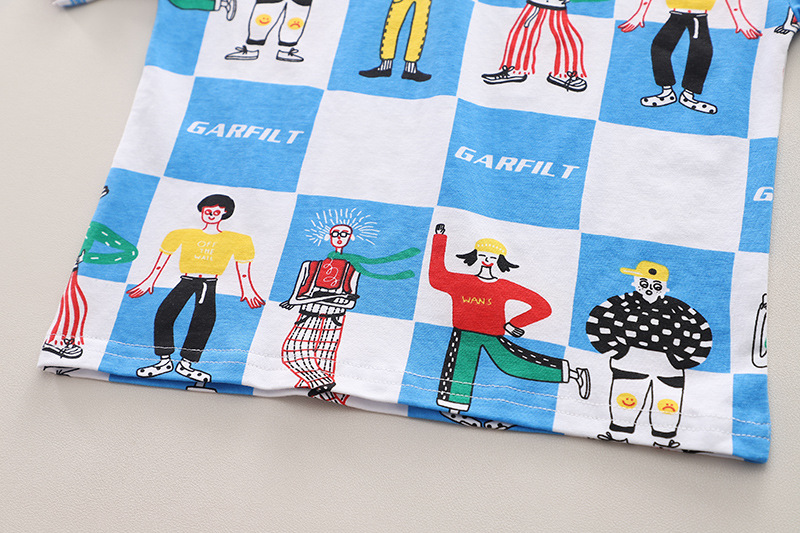 • Bhy 격자 무늬 만화 남자 둥근 목 녹색