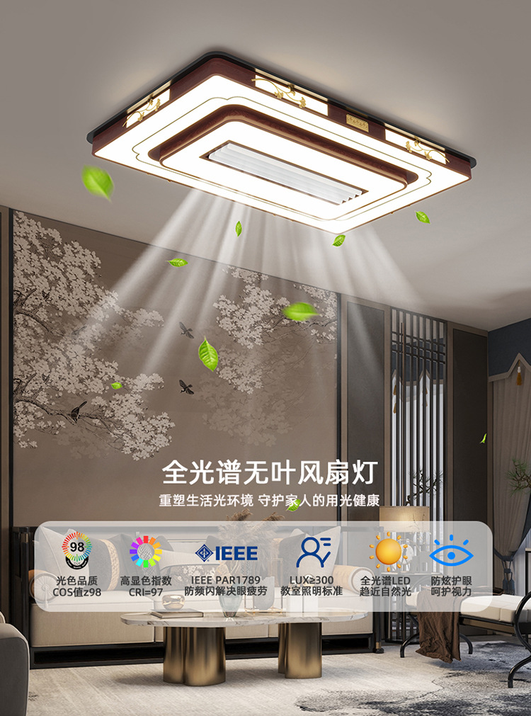전체 스펙트럼 팬 램프, 거실 및 식당 램프, 2025년 신형 중국식 침실 팬 천장 램프, 중산 램프스토어 가기