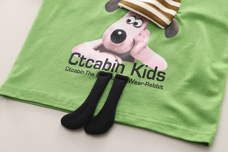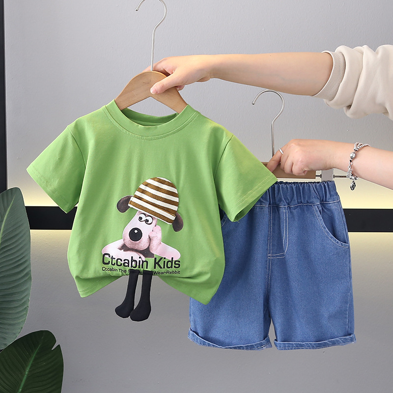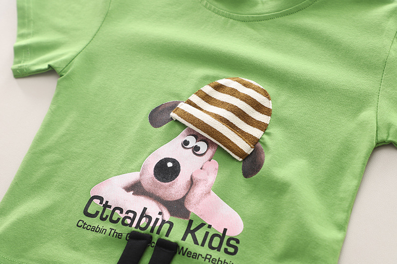 여름 2024 새로운 모자 강아지 소년 짧은 소매 아동복 투피스 어린이 세트 여름 의류 머리카락 세대