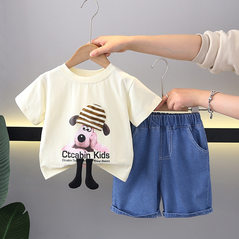 여름 2024 새로운 모자 강아지 소년 짧은 소매 아동복 투피스 어린이 세트 여름 의류 머리카락 세대스토어 가기