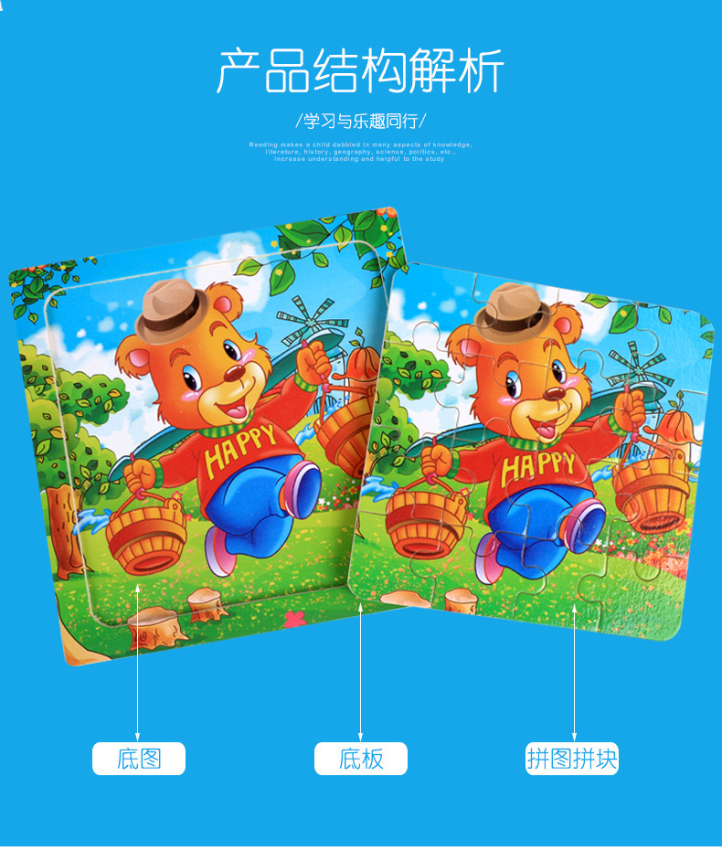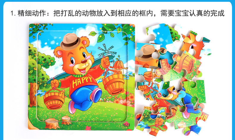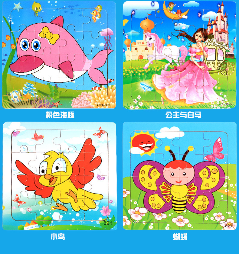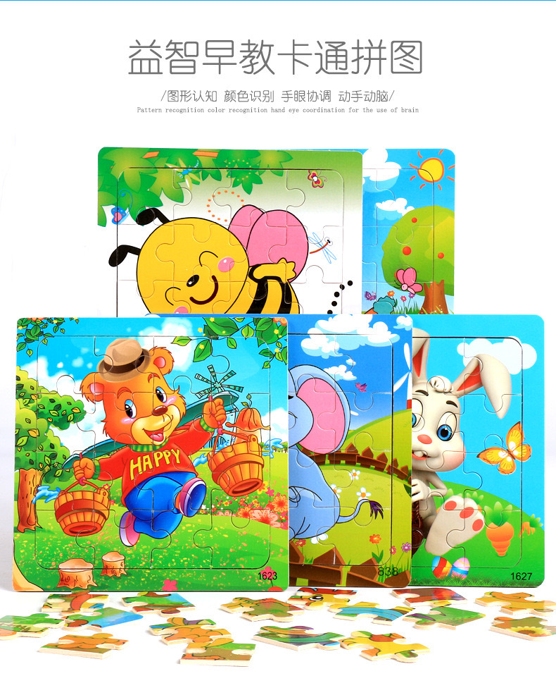 어린이와 아기를위한 나무 16 조각 직소 퍼즐 장난감 조기 교육 교육인지 만화 동물 직소 퍼즐 공급 마구간 판매