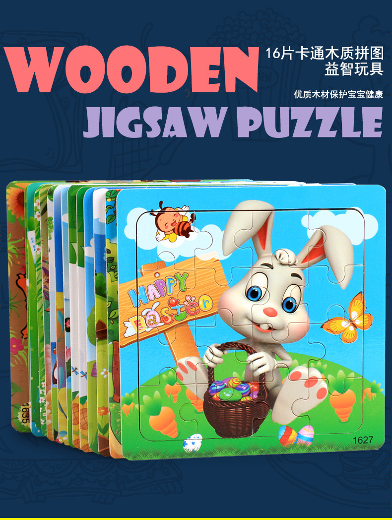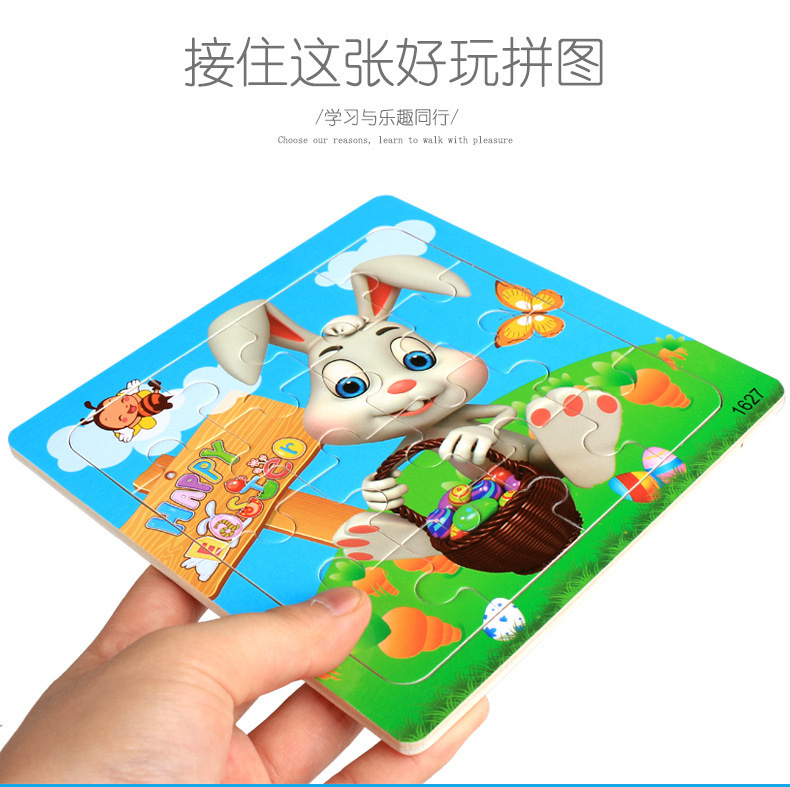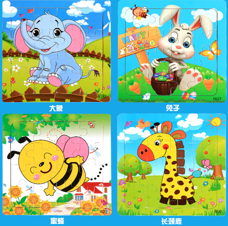 어린이와 아기를위한 나무 16 조각 직소 퍼즐 장난감 조기 교육 교육인지 만화 동물 직소 퍼즐 공급 마구간 판매스토어 가기