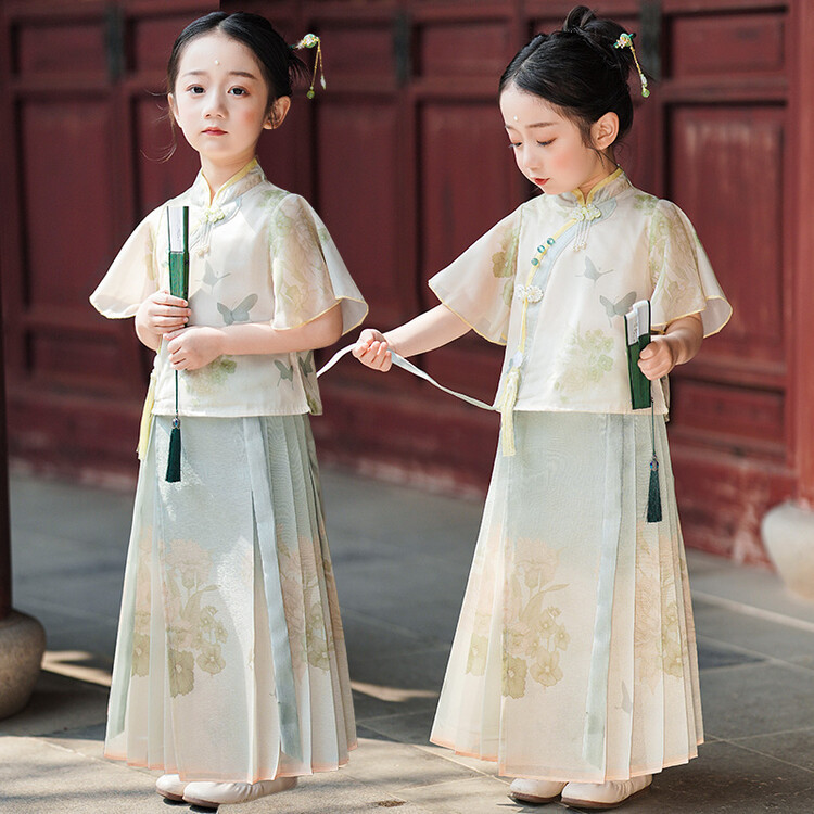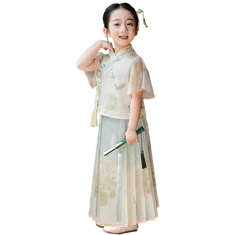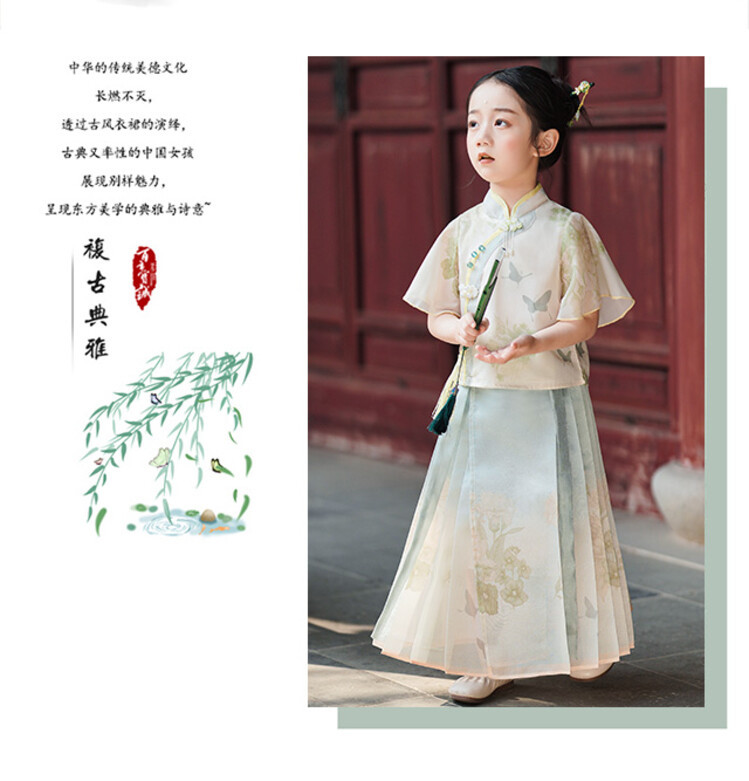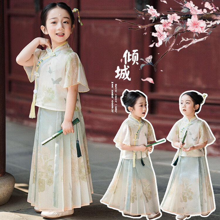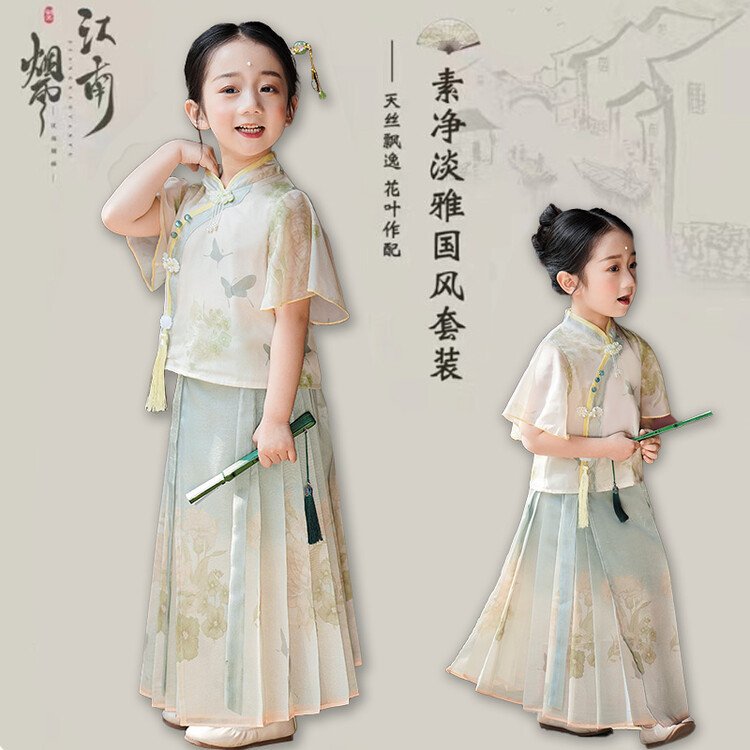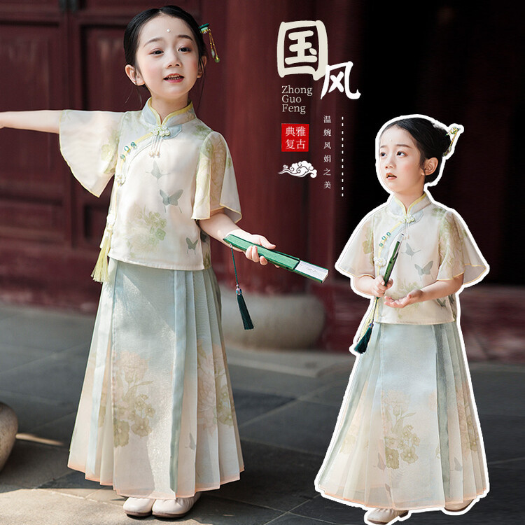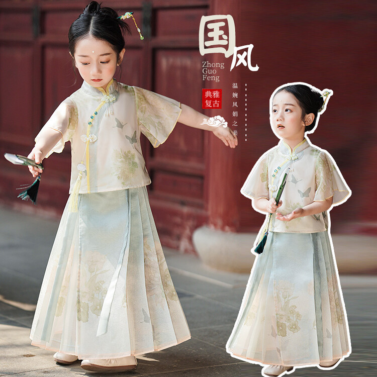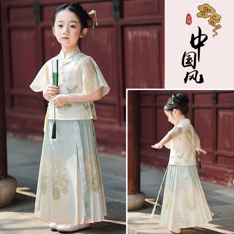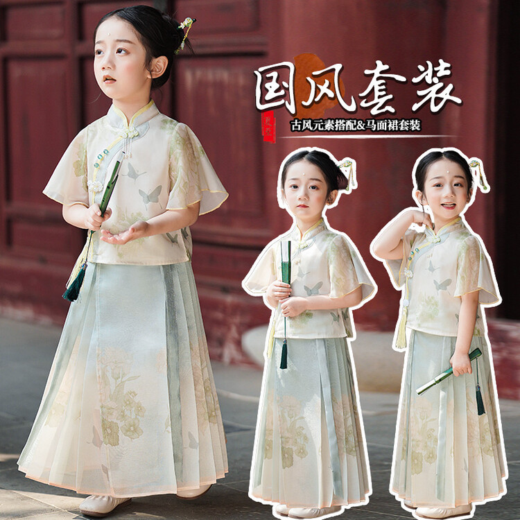 한푸 소녀의 여름 스타일 소녀의 골동품 탕 세트 중국 스타일 의류 거즈 스커트 얇은 어린이 국경일 의상
