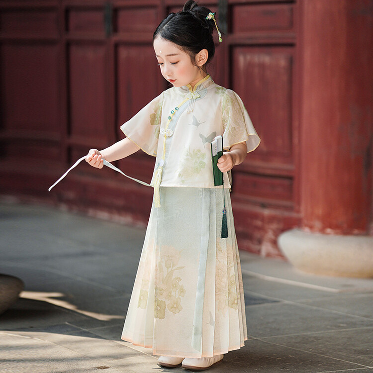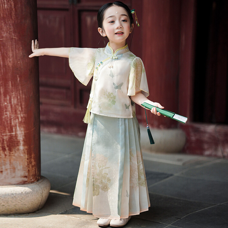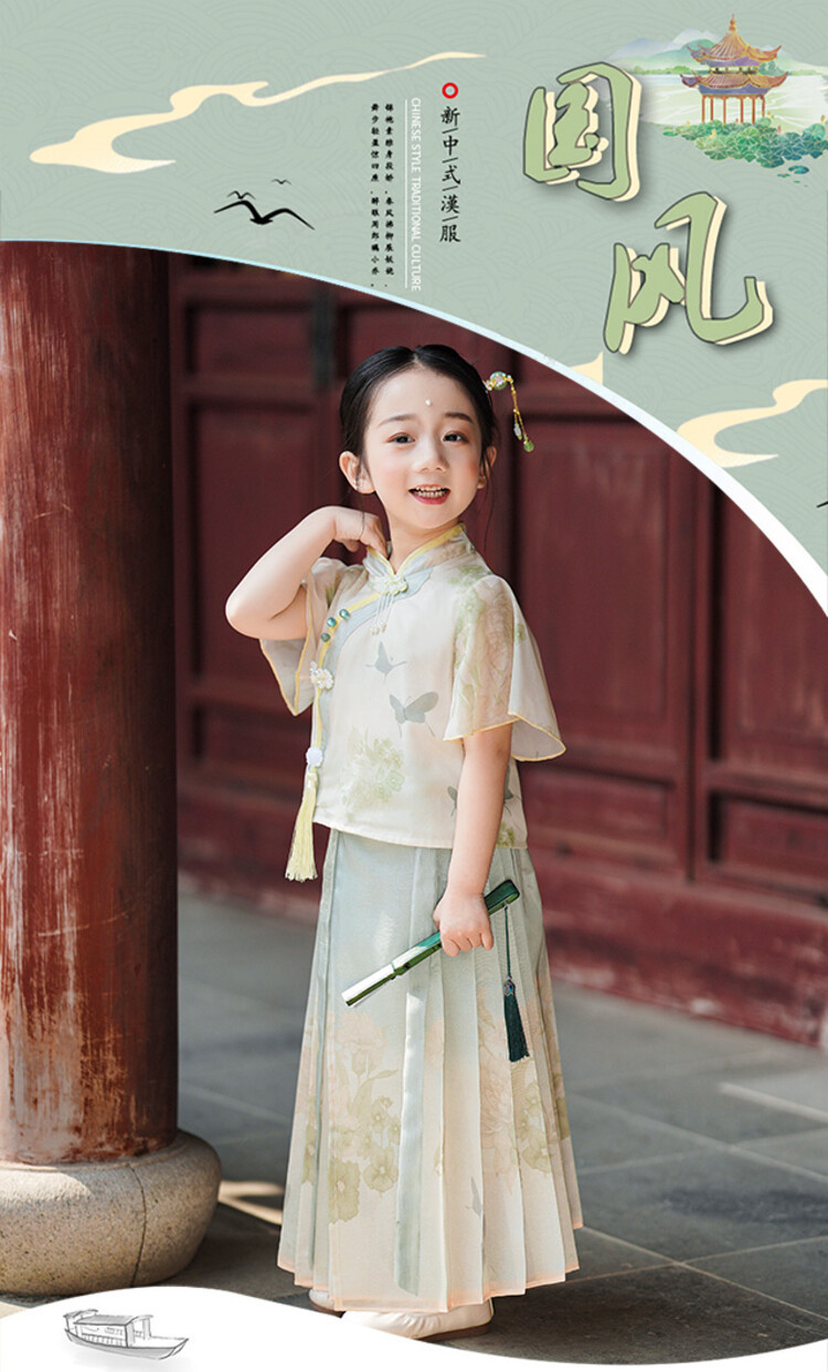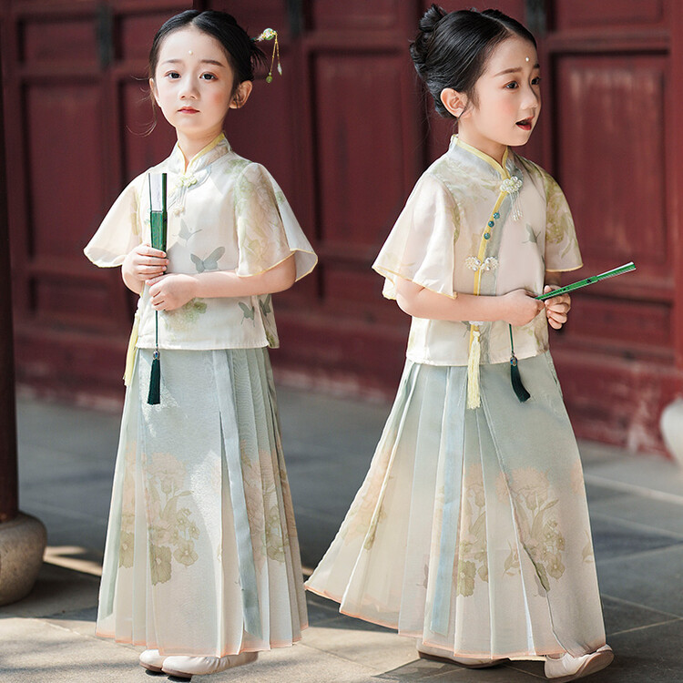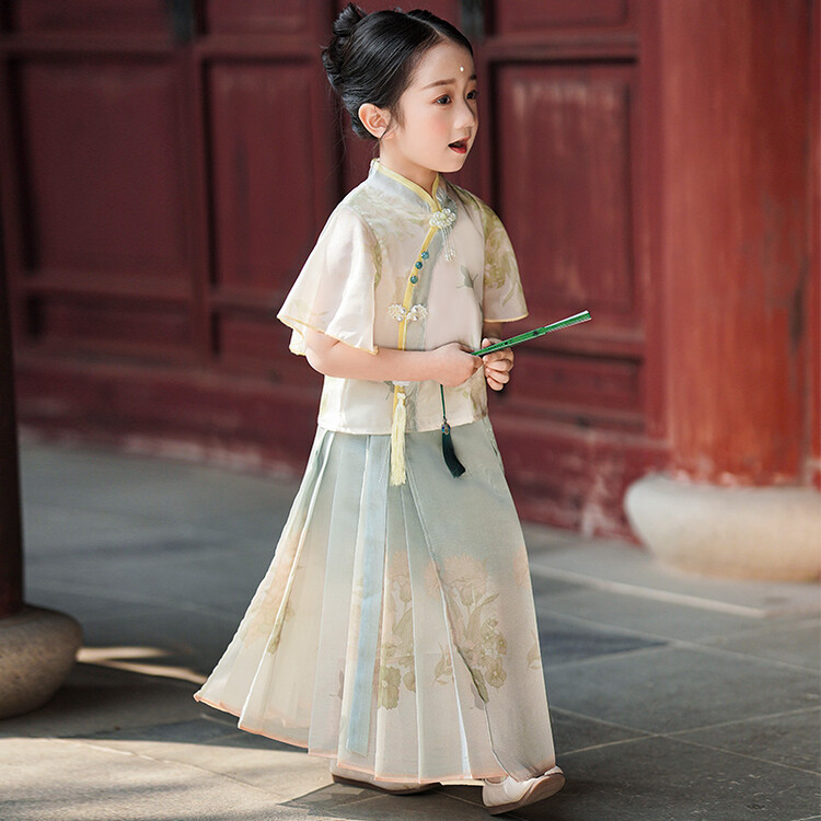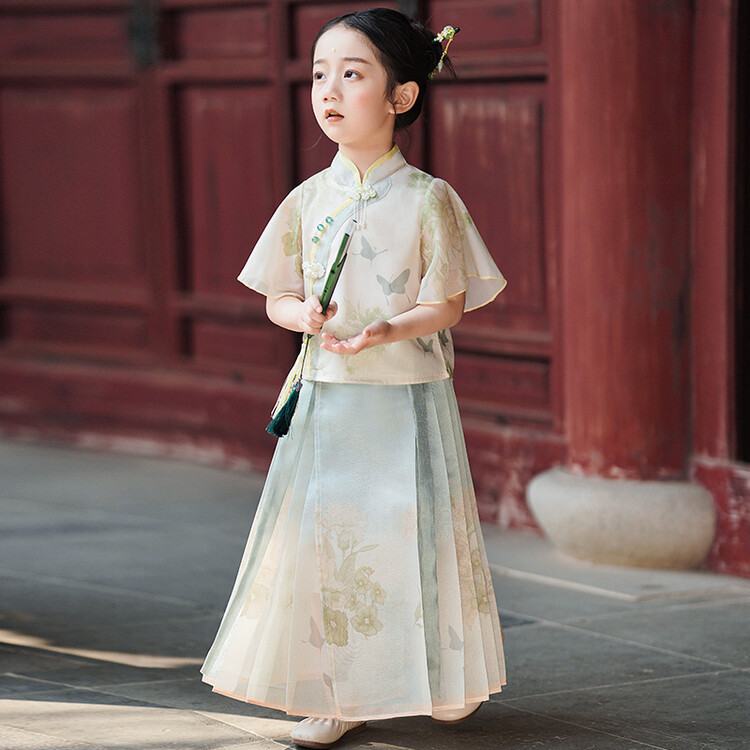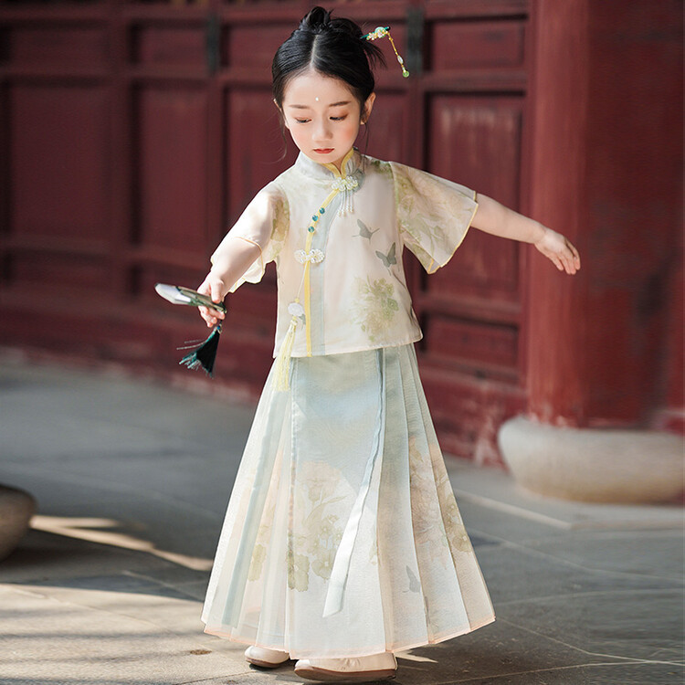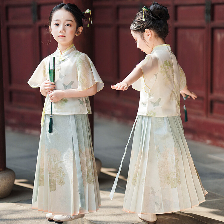 한푸 소녀의 여름 스타일 소녀의 골동품 탕 세트 중국 스타일 의류 거즈 스커트 얇은 어린이 국경일 의상