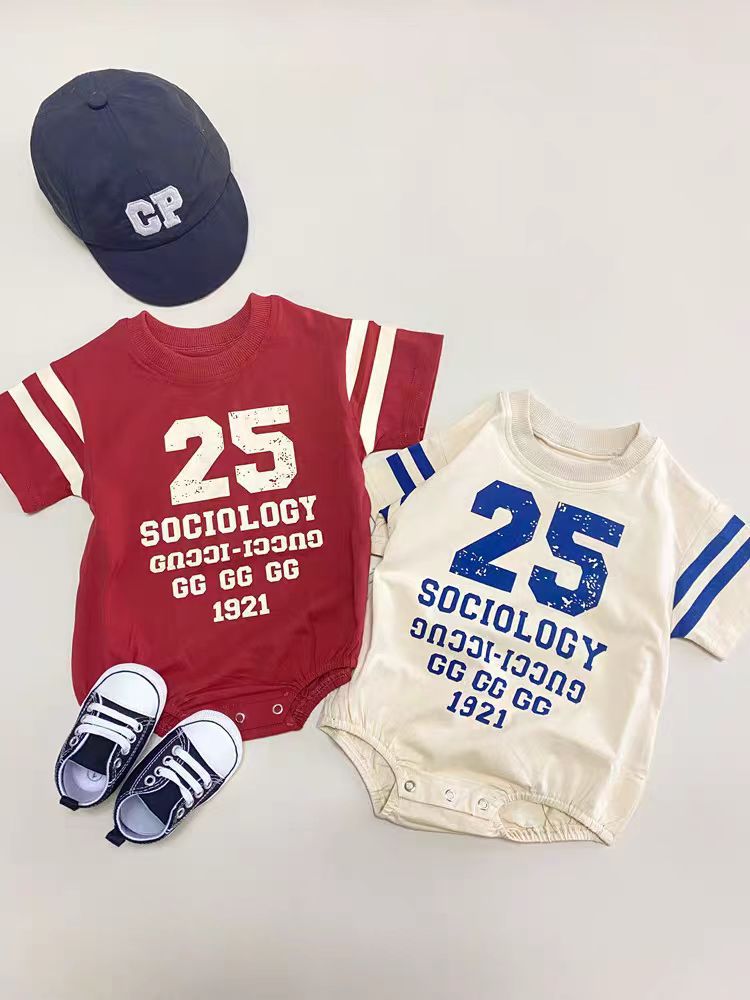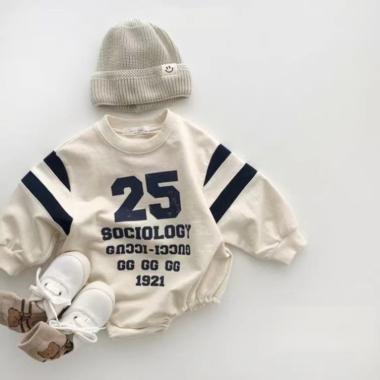 한국식 인스타그램 아기 어린이 영어 봄과 가을 크롤링웨어 방귀 스웨트셔츠 아기의 심플한 외국식 결합 디지털 해트셔츠