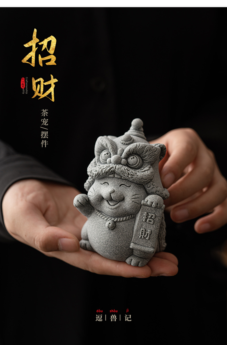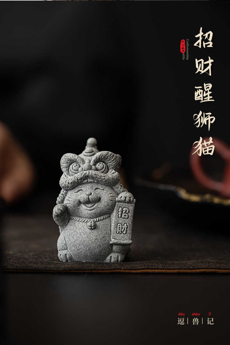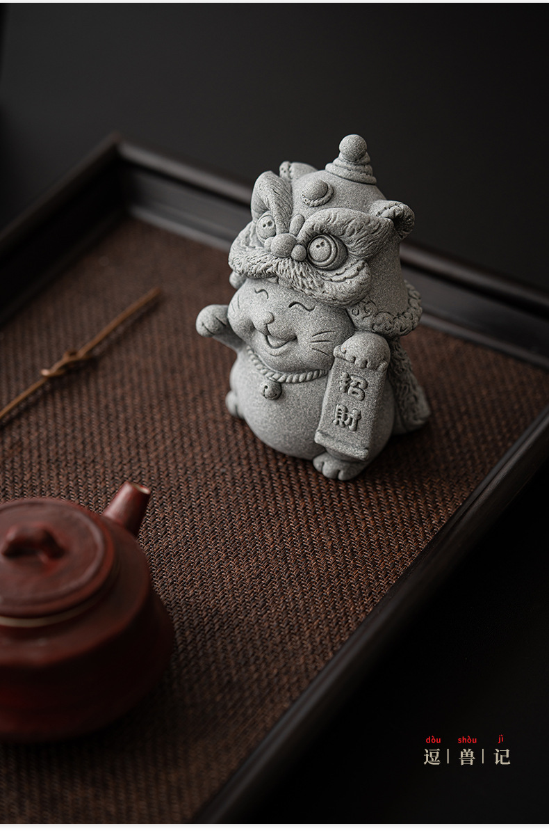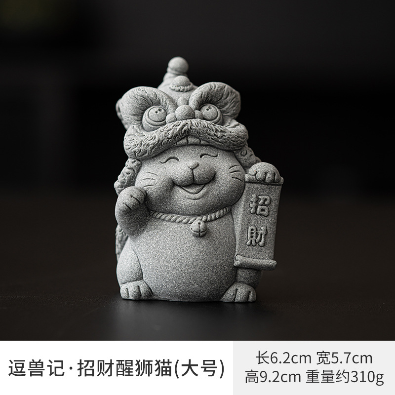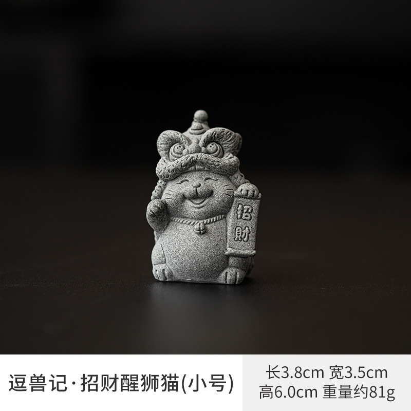 전국 조수 사자 각성 행운의 고양이 장식품 데스크탑 장식 차 애완 동물 개체 공예 원예 분재 장식품 어항 조경스토어 가기